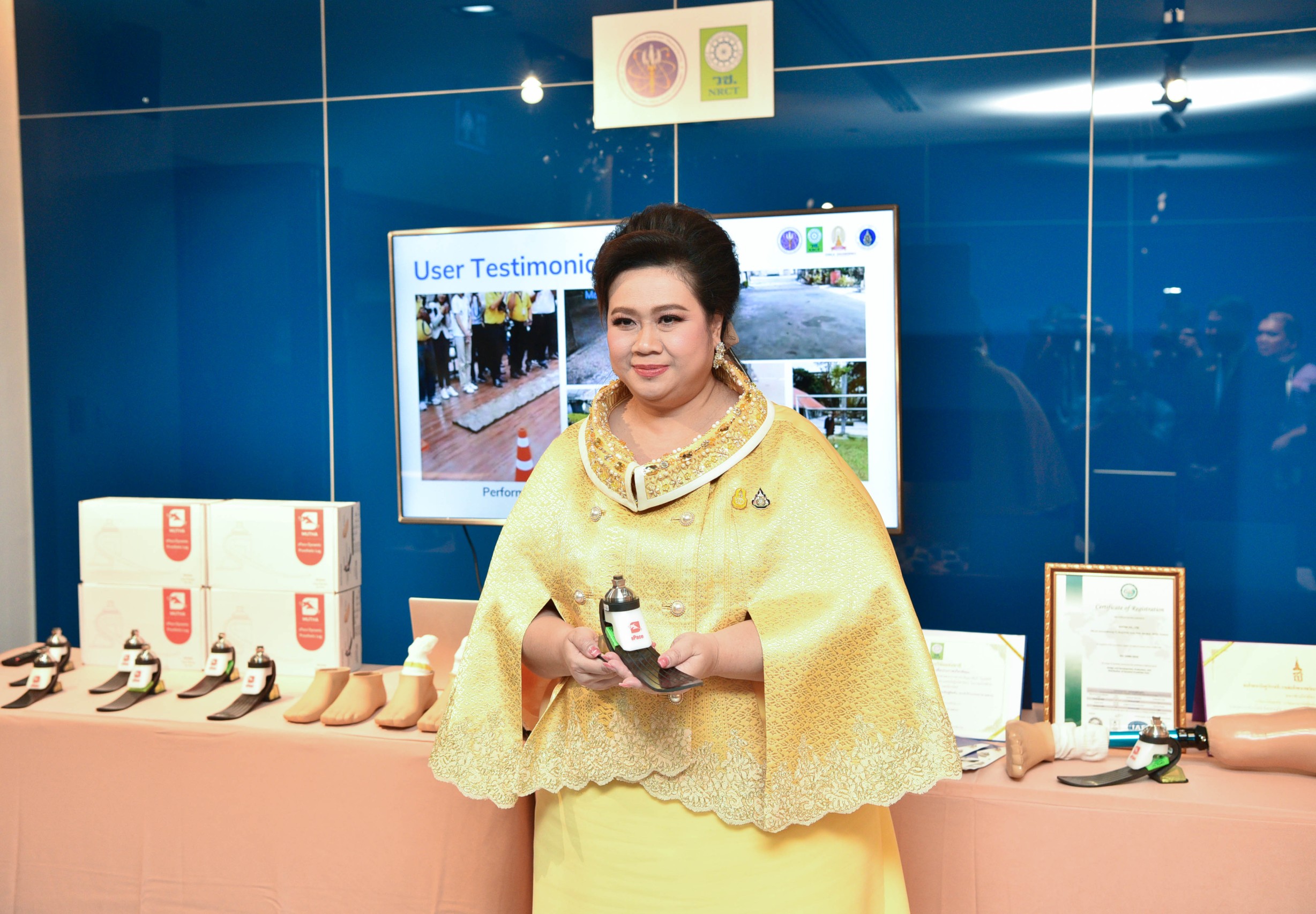 ซึ่งมี รศ.ดร.ไพรัช ตั้งพรประเสริฐ หัวหน้าโครงการวิจัยฯ พร้อมด้วยตัวแทนผู้รับมอบนวัตกรรมเท้าเทียม ทั้ง 7 แห่ง ได้แก่ โรงเรียนกายอุปกรณ์สิรินธร โรงพยาบาลสิรินธร ศูนย์การแพทย์สมเด็จพระเทพรัตนราชสุดา ฯ โรงพยาบาลนครปฐม โรงพยาบาลสมุทรสาคร สถาบันราชประชาสมาสัย สมุทรปราการ และ โรงพยาบาลเจ้าพระยาอภัยภูเบศร ปราจีนบุรี ซึ่งมีตัวแทนผู้พิการขึ้นรับมอบนวัตกรรมเท้าเทียม ณ สำนักงานปลัดกระทรวงการอุดมศึกษา วิทยาศาสตร์ วิจัยและนวัตกรรม