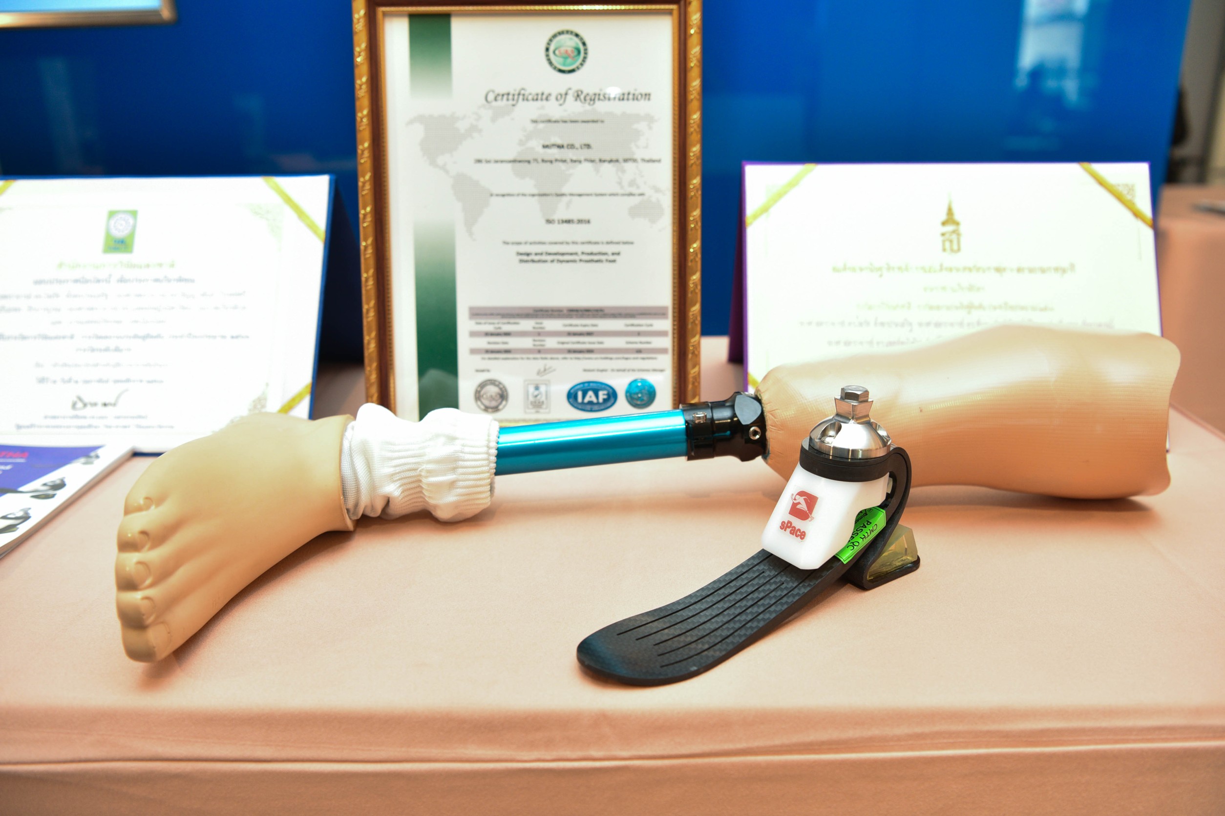 รศ.ดร.ไพรัช ตั้งพรประเสริฐ หัวหน้าโครงการวิจัยฯ กล่าวถึง เท้าเทียมไดนามิกส์เอสเพส (sPace) ได้รับรางวัลผลงานประดิษฐ์คิดค้น จากสำนักงานการวิจัยแห่งชาติ ประจำปี 2566 และได้ผ่านการทดสอบตามมาตรการสากล ISO 10328 จากประเทศเยอรมนี และทำการทดลองทางด้านทางด้านคลินิกโดยโรงเรียนกายอุปกรณ์สิรินธร คณะแพทยศาสตร์ศิริราชพยาบาลมหาวิทยาลัยมหิดล และโรงพยาบาลจุฬาลงกรณ์ เป็นวัสดุอุปกรณ์นวัตกรรมที่มีคุณภาพ พัฒนาโดยฝีมือนักวิจัยของไทยมุ่งหวังให้ผู้พิการสามารถเข้าถึงได้และจะช่วยยกระดับคุณภาพชีวิตของผู้พิการได้ดียิ่งขึ้น