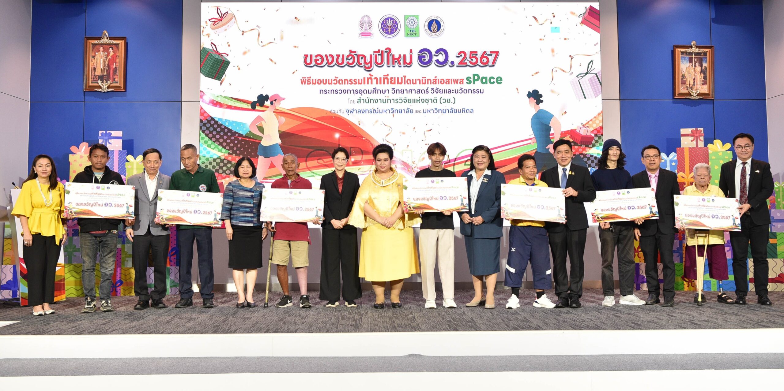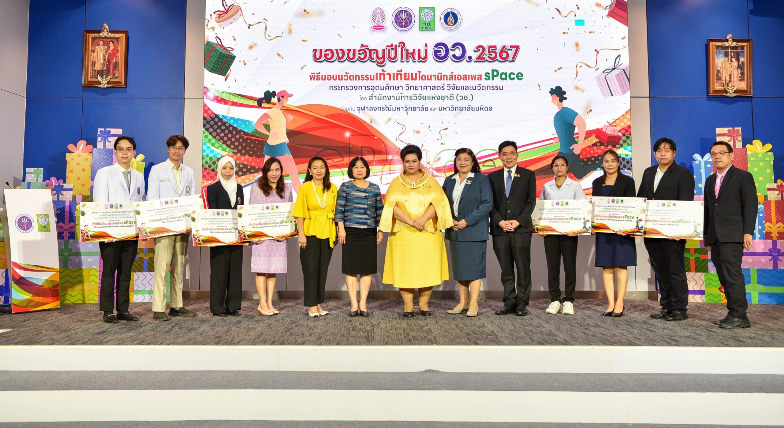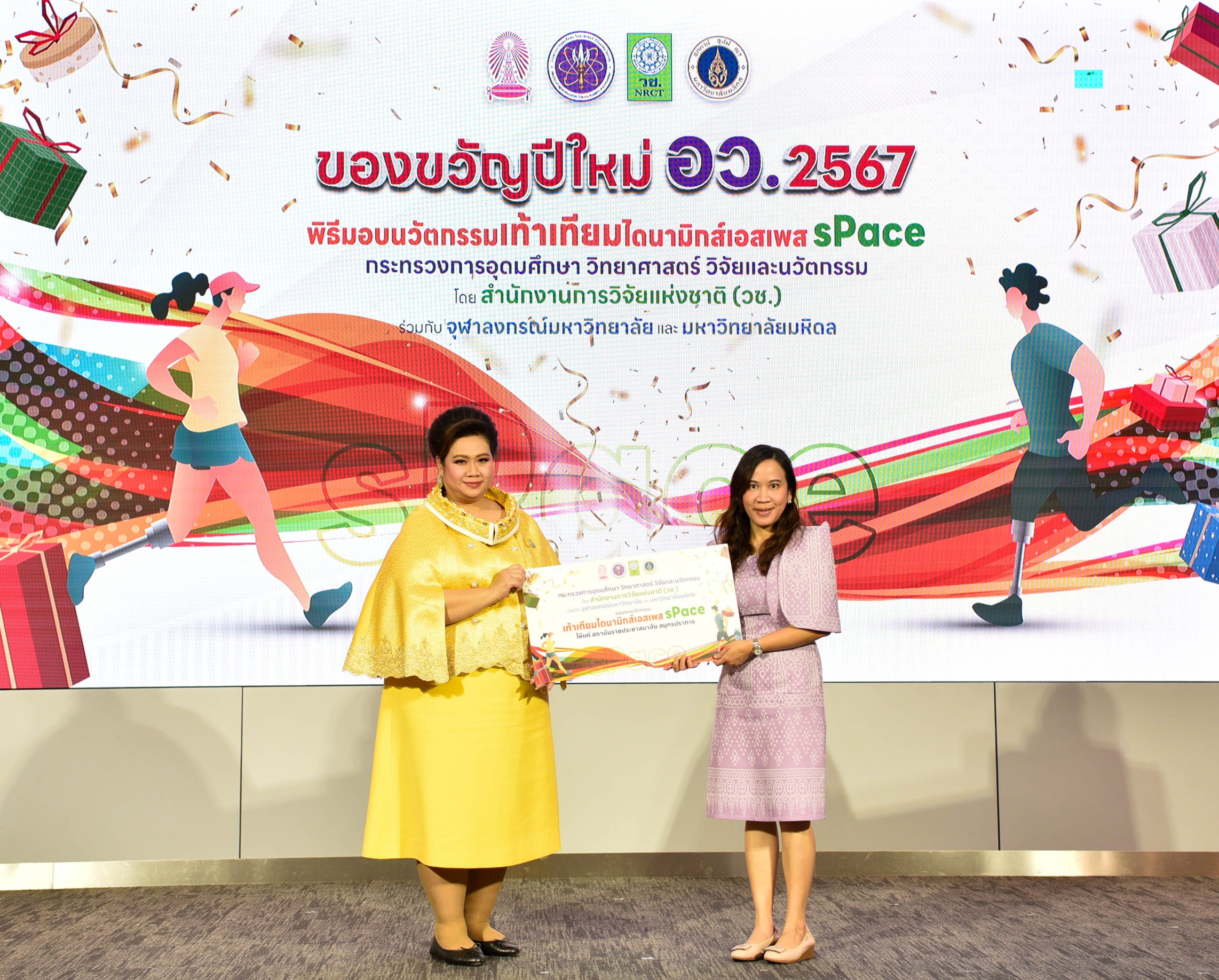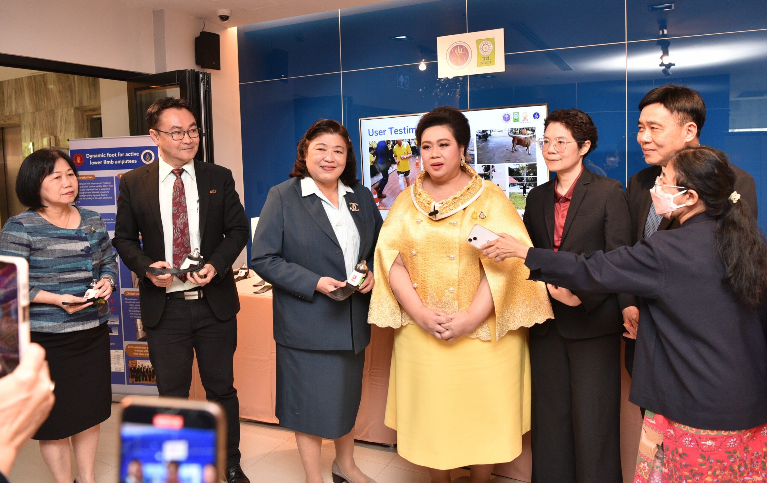 วันที่ 3 เมษายน 2567 กระทรวงการอุดมศึกษา วิทยาศาสตร์ วิจัยและนวัตกรรม โดย สำนักงานการวิจัยแห่งชาติ (วช.) ร่วมกับ จุฬาลงกรณ์มหาวิทยาลัย และมหาวิทยาลัยมหิดล จัดพิธีส่งมอบนวัตกรรมเท้าเทียมไดนามิกส์เอสเพส (sPace) คุณภาพสูง เพื่อพัฒนาคุณภาพชีวิตผู้พิการ ให้กับ โรงพยาบาล ทั้ง 7 แห่ง ภายใต้โครงการของขวัญปีใหม่ 2567 จาก กระทรวง อว. ภายใต้การสนับสนุนทุนวิจัย จาก วช.