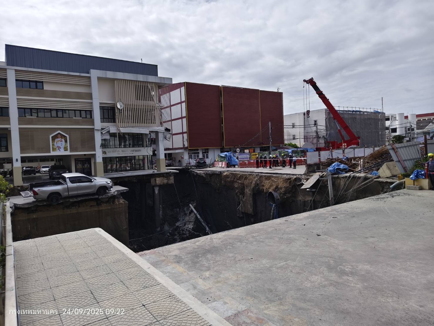 แนวการยุบตัวได้ขยายเป็นวงกว้างขึ้นตามแนวถนน ส่งผลให้เสาไฟฟ้าและรถยนต์บางส่วนตกลงไปในหลุมยุบดังกล่าว