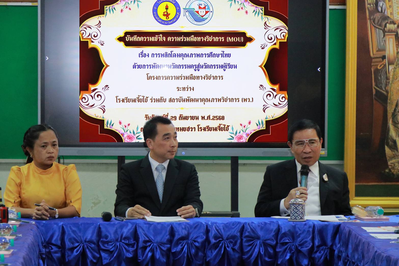 เมื่อวันจันทร์ที่ 29 กันยายน พ.ศ. 2568 เวลา 13.00 น. ณ ห้องประชุมโรงเรียนเจี้ยไช้ ได้จัดให้มีพิธีลงนามบันทึกความเข้าใจ ความร่วมมือทางวิชาการ (MOU) ระหว่างโรงเรียนเจี้ยไช้กับสถาบันพัฒนาคุณภาพวิชาการ (พว.) โดยมี นายธีระ อารักษ์วิชานันท์ ผู้รับใบอนุญาตโรงเรียนเจี้ยไช้ กับ ดร.ศักดิ์สิน โรจน์สราญรมย์ ประธานกรรมการบริหารสถาบันพัฒนาคุณภาพวิชาการ (พว.)ร่วมลงนาม