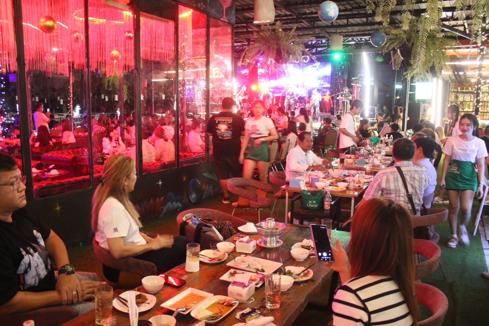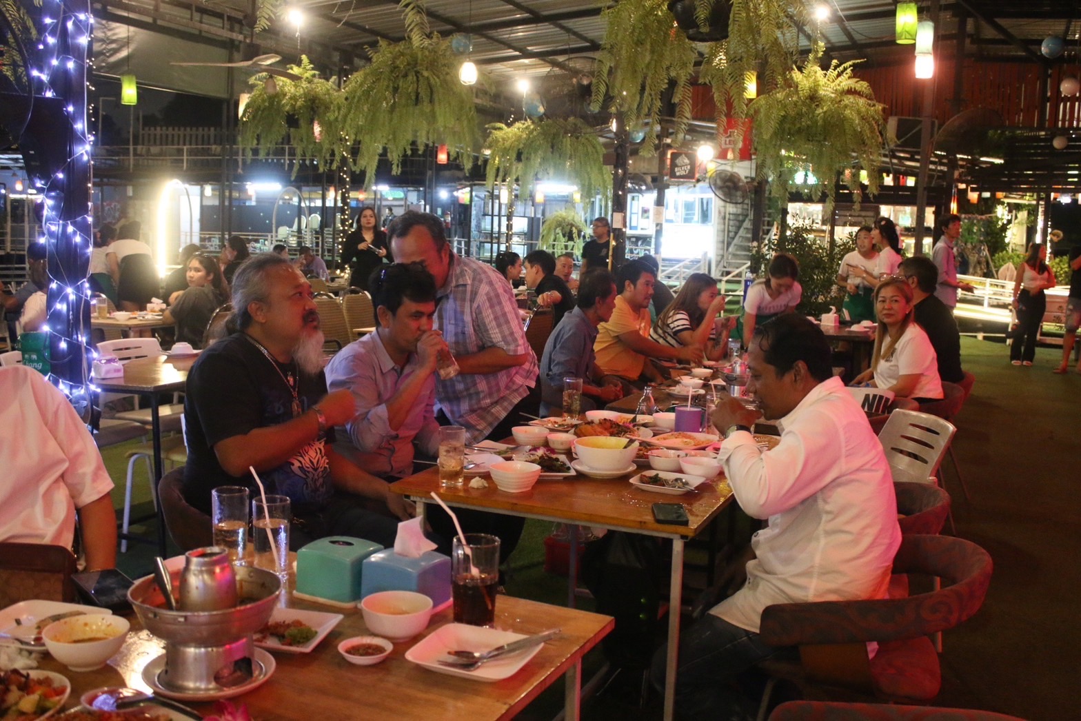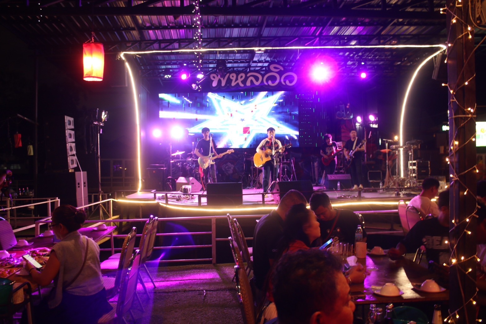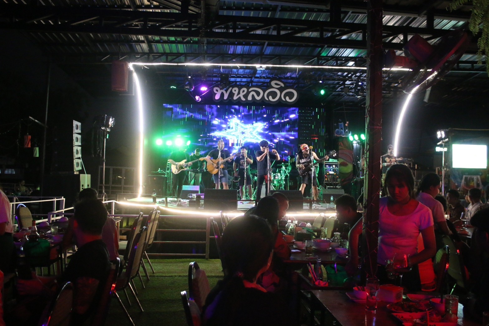 ร้านอาหาร พหลวิว หนึ่งเดียวบนถนนเทพรักษ์ตัดใหม่ ย่านบางเขน ที่เอาใจนักท่องเที่ยว พลบค่ำยามราตรีกับแนวเพลงยุค 90
