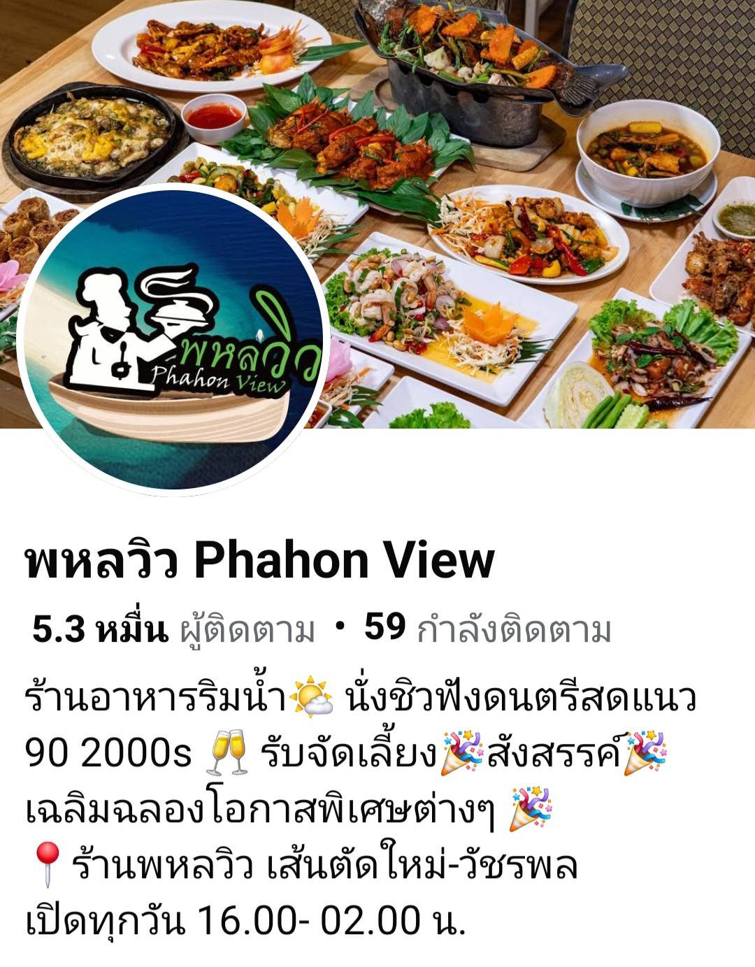 บริหารงานโดยคนหนุ่มไฟแรง พร้อมด้วยทีมงานคุณภาพ ร้านอาหาร พหลวิว อยู่ ไม่ไกลจากถนนเทพรักษ์ ซอย55 ถนนตัดใหม่- วัชรพล ในย่านบางเขน ถ้ามาจากถนนพหลโยธิน ตัดเข้าบิ๊กซีสะพานใหม่ มุ่งหน้าถนนเทพรักษ์ตัดใหม่-วัชรพล ที่จอดรถสะดวกสบายติดถนนใหญ่ เดินทางไปมาสะดวก หรือจะกดเข้าไปชมได้ที่เพจ:ร้านอาหารพหลวิว ทุกอย่างจะจบครบที่นี่ ตั้งแต่เวลา 16.00-02.00 น.