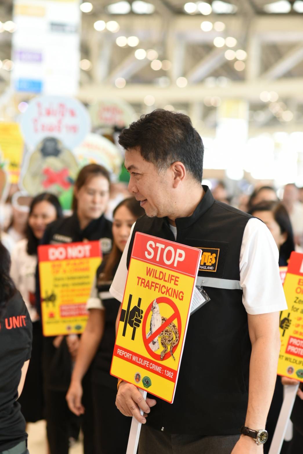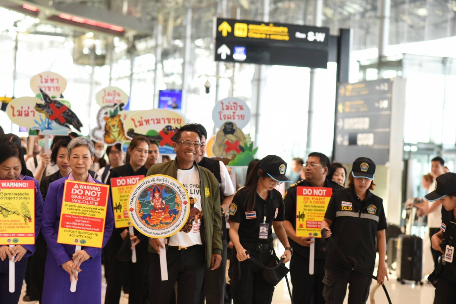 ด้าน นายอรรถพล เจริญชันษา อธิบดีกรมอุทยานแห่งชาติ สัตว์ป่า และพันธุ์พืช กล่าวว่า ตามนโยบายของท่านสุชาติ ชมกลิ่นจึงได้เร่งประชาสัมพันธ์เชิงรุกแก่กลุ่มนักท่องเที่ยวเป้าหมาย เพื่อสร้างความรู้ความเข้าใจและความตระหนักถึงผลกระทบจากการค้าสัตว์ป่าและพืชป่าผิดกฎหมาย ซึ่งส่งผลกระทบทั้งต่อสิ่งแวดล้อม เศรษฐกิจ และความมั่นคงของประเทศ โดยได้จัดกิจกรรมเดินรณรงค์ “หยุดการค้าสัตว์ป่าผิดกฎหมาย” ขึ้นที่ท่าอากาศยานสุวรรณภูมิ ร่วมกับเครือข่าย Thailand-WEN (Thailand Wildlife Enforcement Network) ที่มีหน่วยงานความร่วมมือทั้ง บริษัท ท่าอากาศยานไทย จำกัด (มหาชน) กรมศุลกากร กรมประมง กรมวิชาการเกษตร กรมปศุสัตว์