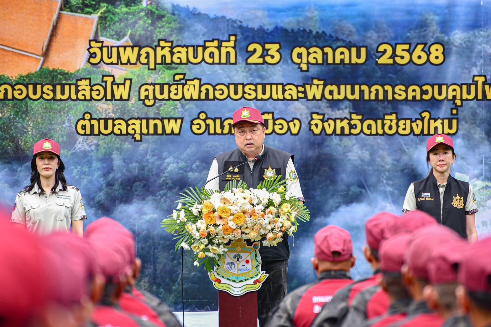 วันนี้ (23 ตุลาคม 2568) เวลา 15.00 น. นายสุชาติ ชมกลิ่น รองนายกรัฐมนตรีและรัฐมนตรีว่าการกระทรวงทรัพยากรธรรมชาติและสิ่งแวดล้อม เป็นประธานการประชุมมอบนโยบายและรับฟังความคิดเห็น เพื่อเตรียมความพร้อมในการป้องกันและแก้ไขปัญหาไฟป่า หมอกควัน และฝุ่นละอองขนาดเล็ก (PM2.5) ประจำปี 2569 ณ ศูนย์ปฏิบัติการไฟป่าเชียงใหม่ ตำบลสุเทพ อำเภอเมืองเชียงใหม่ จังหวัดเชียงใหม่ และผ่านระบบ Video Conference เชื่อมต่อไปยัง 20 จังหวัดเฝ้าระวัง และหน่วยงานในสังกัดกระทรวงฯ ทั่วประเทศพร้อมเปิด