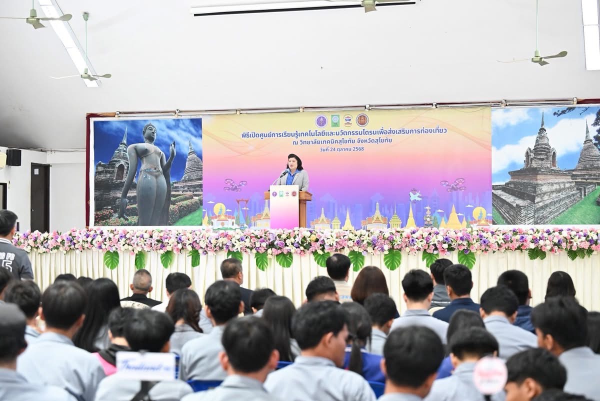 วันที่ 24 ตุลาคม 2568 สำนักงานการวิจัยแห่งชาติ (วช.) กระทรวงการอุดมศึกษา วิทยาศาสตร์ วิจัยและนวัตกรรม ร่วมกับ สมาคมกีฬาเครื่องบินจำลองและวิทยุบังคับ จัดพิธีเปิดศูนย์การเรียนรู้เทคโนโลยีและนวัตกรรมโดรนเพื่อส่งเสริมการท่องเที่ยว โดย ดร.วิภารัตน์ ดีอ่อง ผู้อำนวยการสำนักงานการวิจัยแห่งชาติ ให้เกียรติเป็นประธานในพิธีเปิด พร้อมด้วย ดร.ธวัช สอนง่ายดี รองผู้อำนวยการวิทยาลัยเทคนิคสุโขทัย นายพิศิษฐ์ มิตรเกื้อกูล นายกสมาคมกีฬาเครื่องบินจำลองและวิทยุบังคับ ผู้ทรงคุณวุฒิ วช. คณะครู นักเรียน นักศึกษา ให้การต้อนรับ ณ วิทยาลัยเทคนิคสุโขทัย จังหวัดสุโขทัย