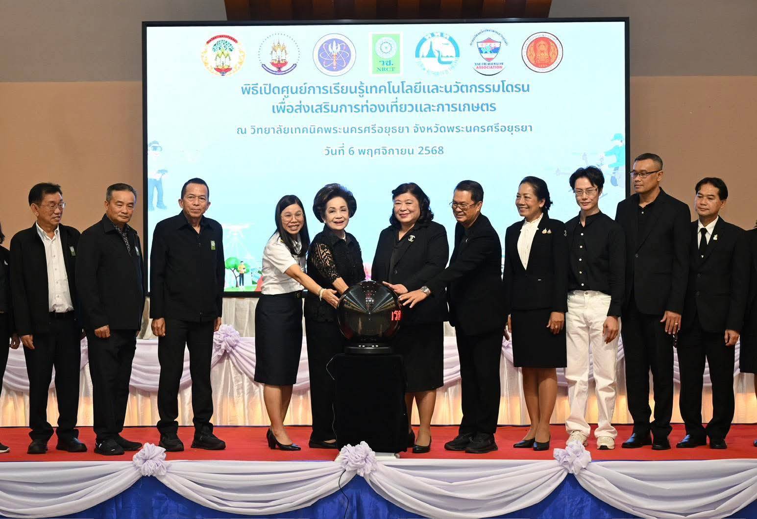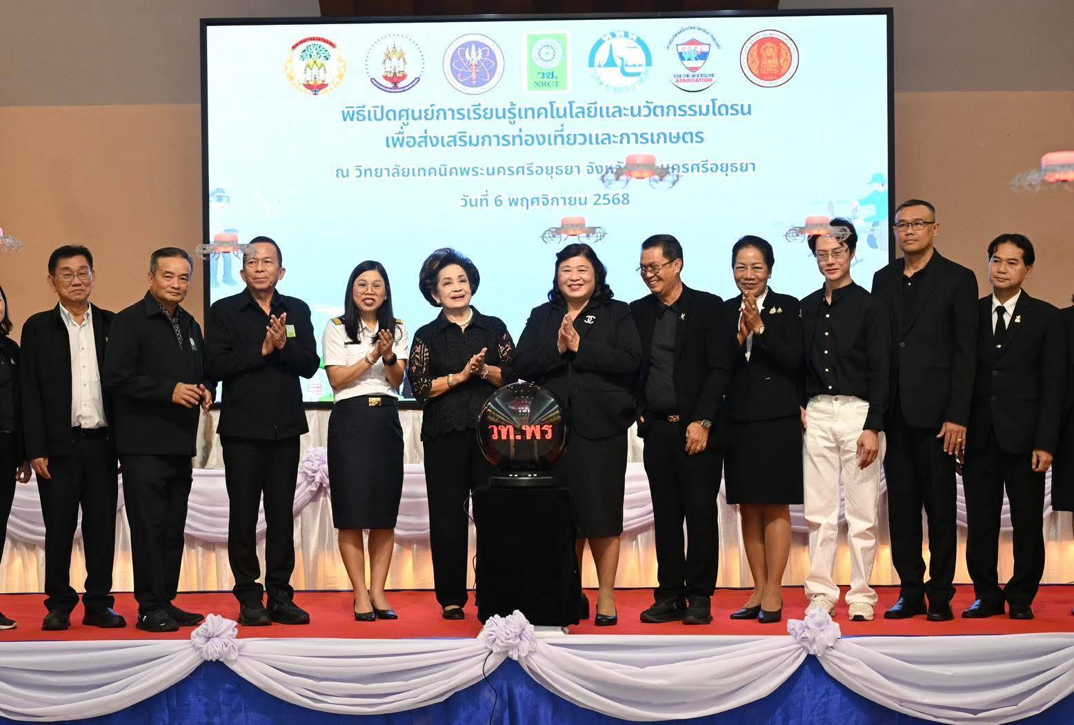 วันที่ 6 พฤศจิกายน 2568 สำนักงานการวิจัยแห่งชาติ(วช.) กระทรวงการอุดมศึกษา วิทยาศาสตร์ วิจัยและนวัตกรรม โดย ดร.วิภารัตน์ ดีอ่อง ผู้อำนวยการสำนักงานการวิจัยแห่งชาติ เป็นประธานในพิธีเปิด “ศูนย์การเรียนรู้เทคโนโลยีและนวัตกรรมโดรนเพื่อส่งเสริมการท่องเที่ยวและการเกษตร” โดยมี นางสมทรง พันธุ์เจริญวรกุล นายกองค์การบริหารส่วนจังหวัดพระนครศรีอยุธยา ร่วมในพิธีเปิด พร้อมด้วยนางสาวมยุรี ศรีระบุตร ผู้อำนวยการวิทยาลัยเทคนิคพระนครศรีอยุธยา นางสาวนปภา สังฆโสภณ รองผู้อำนวยการการท่องเที่ยวแห่งประเทศไทยสำนักงานพระนครศรีอยุธยา อาจารย์พิศิษฐ์ มิตรเกื้อกูล นายกสมาคมกีฬาเครื่องบินจำลองและวิทยุบังคับ พร้อมด้วยคณะผู้บริหาร ภาคีเครือข่าย สื่อมวลชน และแขกผู้มีเกียรติ เข้าร่วมในพิธี ณ วิทยาลัยเทคนิคพระนครศรีอยุธยา จังหวัดพระนครศรีอยุธยา