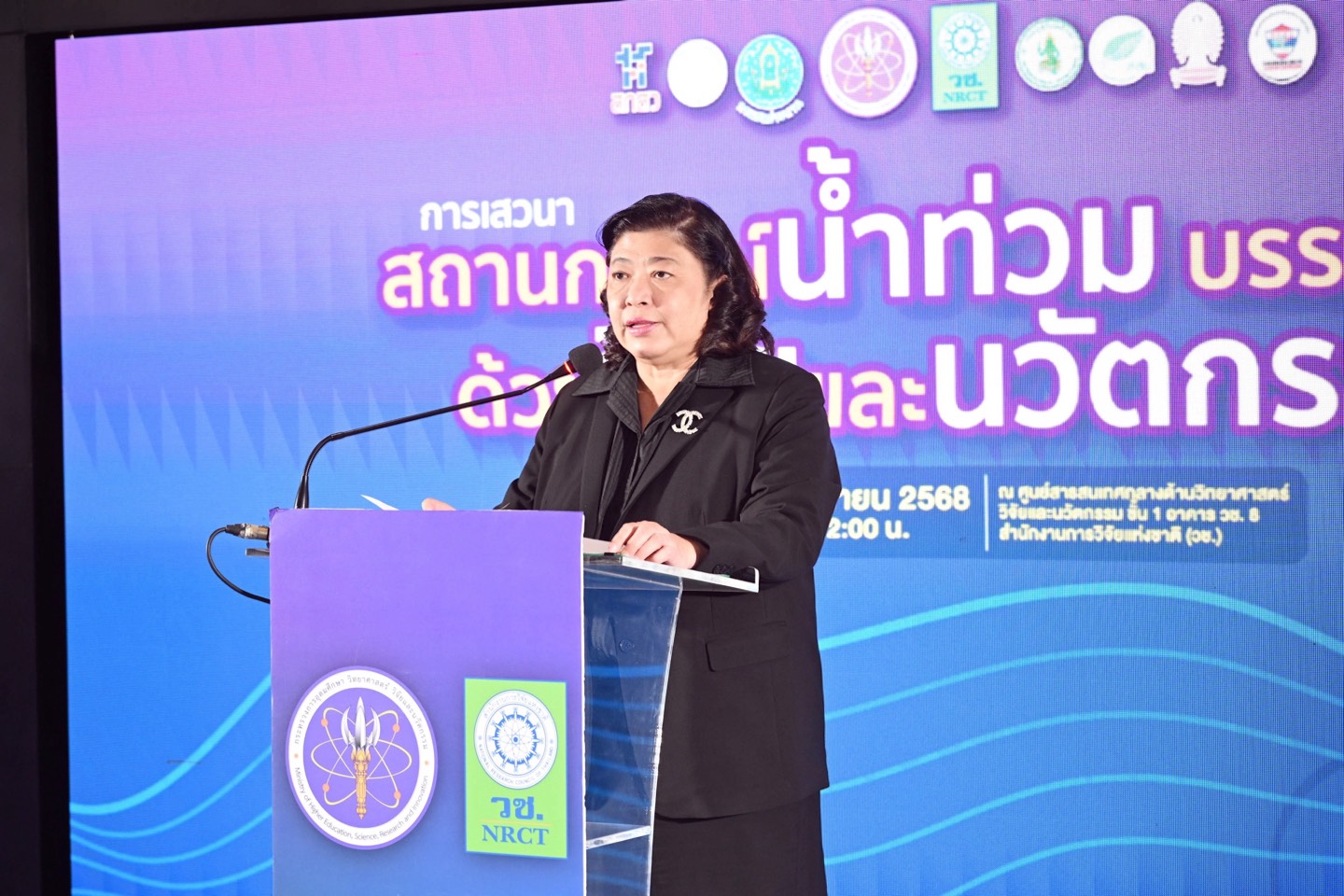 วันที่ 14 พฤศจิกายน 2568 สำนักงานการวิจัยแห่งชาติ(วช.) กระทรวงการอุดมศึกษา วิทยาศาสตร์ วิจัยและนวัตกรรม จัดการเสวนา “สถานการณ์น้ำท่วม บรรเทาได้ด้วยวิจัยและนวัตกรรม” โดยมี ดร.วิภารัตน์ ดีอ่อง ผู้อำนวยการสำนักงานการวิจัยแห่งชาติ เป็นประธานเปิดการเสวนา พร้อมด้วยคณะวิทยากรผู้เชี่ยวชาญและนักวิจัย ร่วมกิจกรรมเสวนา ณ ศูนย์ข้อมูลสารสนเทศกลางด้านวิทยาศาสตร์ วิจัยและนวัตกรรมของประเทศ อาคาร วช. 8