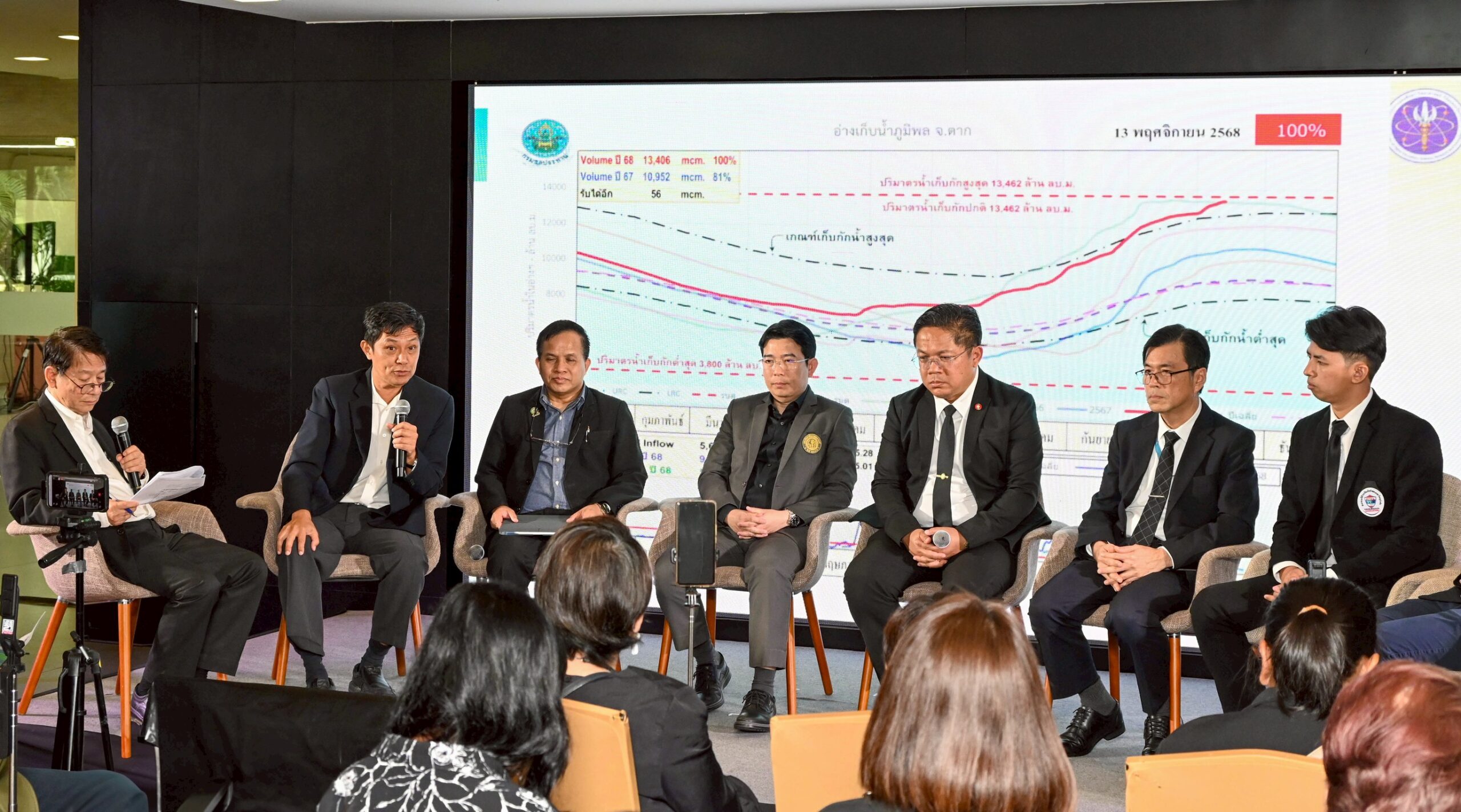 – ดร.ธเนศร์ สมบูรณ์ กรมชลประทาน กล่าวถึงการบริหารจัดการน้ำช่วงปลายฤดูฝนของกรมชลประทาน เพื่อให้เป็นที่แน่ใจว่าประชาชนจะมีน้ำเพียงพอในช่วงฤดูแล้ง ช่วงต้นเดือน พย. เขื่อนจะเก็บน้ำไว้ประมาณร้อยละ 80 ของความจุและมีการปรับตามสถานการณ์รายเดือน สถานการณ์ครั้งนี้ปริมาณน้ำส่วนใหญ่มาจากแม่น้ำปิง ซึ่งทำให้เขื่อนภูมิพลมีปริมาณน้ำเต็มความจุ โจทย์สำคัญคือในเดือน พฤษภาคม 2569 จะบริหารการพร่องน้ำของเขื่อนในฤดูฝนอย่างไร เพื่อให้เป็นเครื่องมือกับความแปรปรวนของอากาศที่เกิดขึ้น