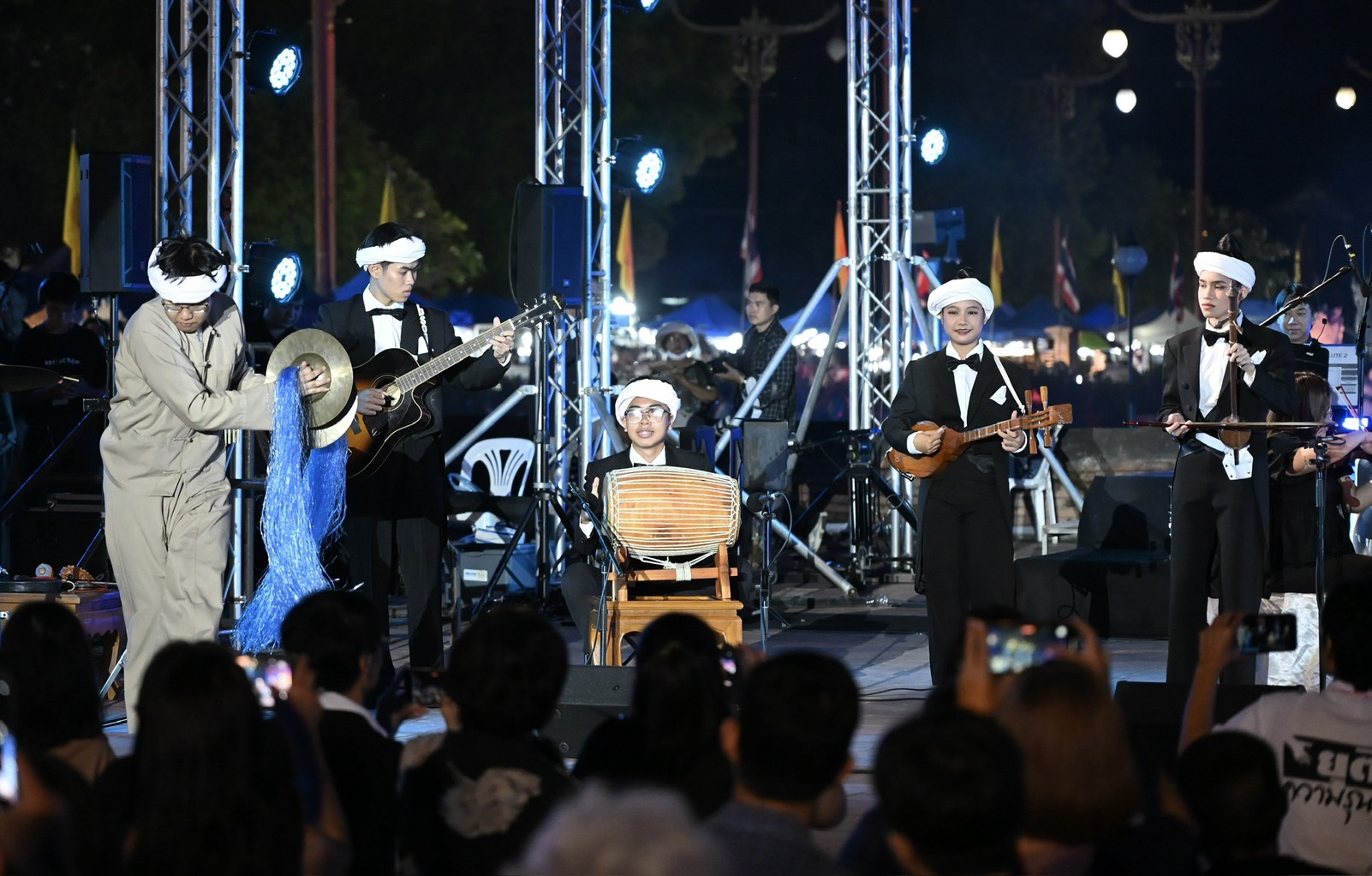 วันที่ 15 พฤศจิกายน 2568 สำนักงานการวิจัยแห่งชาติ(วช.) กระทรวงการอุดมศึกษา วิทยาศาสตร์ วิจัยและนวัตกรรม สนับสนุนมูลนิธิอาจารย์สุกรี เจริญสุข จัดกิจกรรมถ่ายทอดการวิจัยผ่านการแสดงดนตรี “เล่าเรื่องเมืองน่านผ่านเสียงดนตรี” ภายใต้โครงการวิจัยดนตรีประจำชาติบนความแตกต่าง ความหลากหลาย และอยู่ร่วมกันอย่างมีความสุข โดยได้รับเกียรติจาก ดร.วิภารัตน์ ดีอ่อง ผู้อำนวยการสำนักงานการวิจัยแห่งชาติ เป็นประธานในพิธีเปิด พร้อมนี้ นางวิไลวรรณ บุดาสา รองผู้ว่าราชการจังหวัดน่าน กล่าวต้อนรับ และรองศาสตราจารย์ ดร.สุกรี เจริญสุข ประธานมูลนิธิอาจารย์สุกรี เจริญสุข กล่าวถึงเป้าหมาย ณ ข่วงเมืองน่าน (ลานข้างวัดภูมินทร์) จังหวัดน่าน