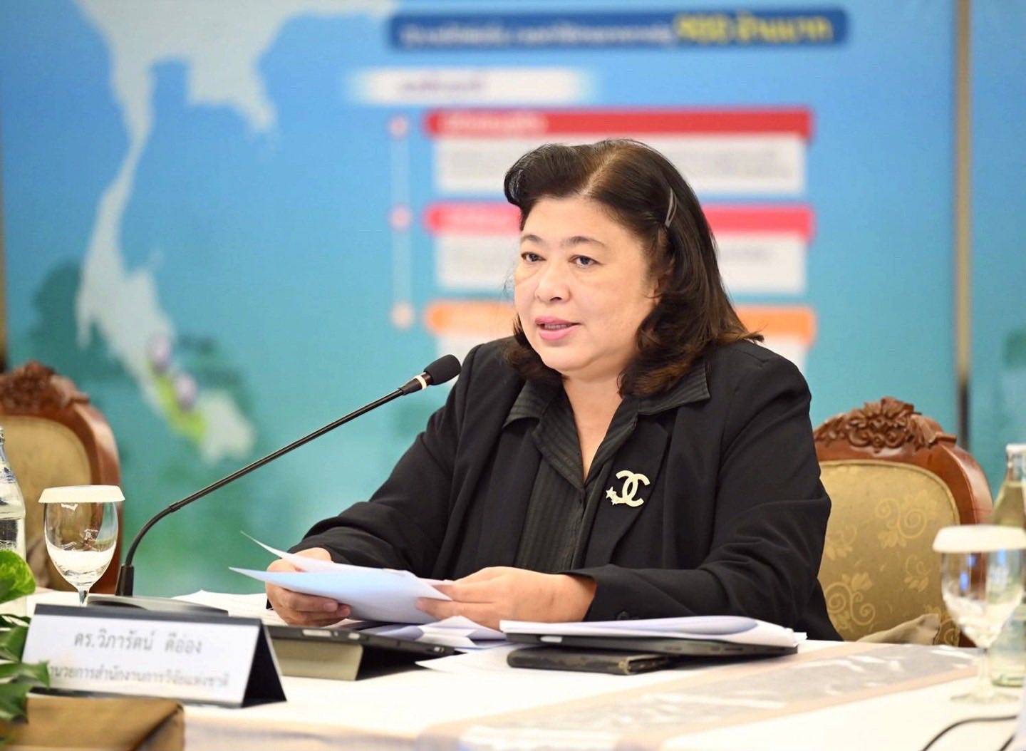 ดร.วิภารัตน์ ดีอ่อง ผู้อำนวยการสำนักงานการวิจัยแห่งชาติ กล่าวว่า การประชุมรับฟังความคิดเห็นครั้งนี้มีเป้าหมายเพื่อร่วมกันระดมความคิดเห็นจากภาคีเครือข่าย ทั้งในระดับจังหวัด หน่วยงานภาครัฐ ภาคเอกชน สถาบันการศึกษา และชุมชน เพื่อให้เราสามารถกำหนดแนวทางการบริหารจัดการทรัพยากรน้ำที่เหมาะสมกับบริบทของพื้นที่ขอนแก่นและชัยภูมิ ภายใต้แนวคิด “น้ำมั่นคง ไม่ท่วม ไม่แล้ง” ซึ่งเป็นหนึ่งในเป้าหมายสำคัญของแผนงานยุทธศาสตร์ ววน. โดย วช. มุ่งมั่นที่จะทำหน้าที่เป็นกลไกกลางในการบูรณาการองค์ความรู้จากนักวิจัยและภาคส่วนต่าง ๆ เพื่อสร้างนวัตกรรมและแนวทางการบริหารจัดการน้ำที่ยั่งยืน ทั้งในเชิงนโยบายและเชิงปฏิบัติ โดยเราจะนำข้อคิดเห็นและข้อเสนอแนะจากเวทีวันนี้ไปต่อยอดสู่การดำเนินงานร่วมกับพื้นที่เป้าหมายทั้ง 10 จังหวัดทั่วประเทศ ร่วมเป็นส่วนหนึ่งในการแก้ปัญหาด้านน้ำของประเทศ อันเป็นจุดเริ่มต้นสำคัญในการ “มุ่งเป้าอนาคตประเทศไทยเพื่อน้ำมั่นคง ไม่ท่วม ไม่แล้ง ด้วยวิจัยและนวัตกรรม”ตลอดจนสร้างการเปลี่ยนแปลงเชิงบวกต่อคุณภาพชีวิตของประชาชนและชุมชนในจังหวัดขอนแก่นและจังหวัดชัยภูมิ