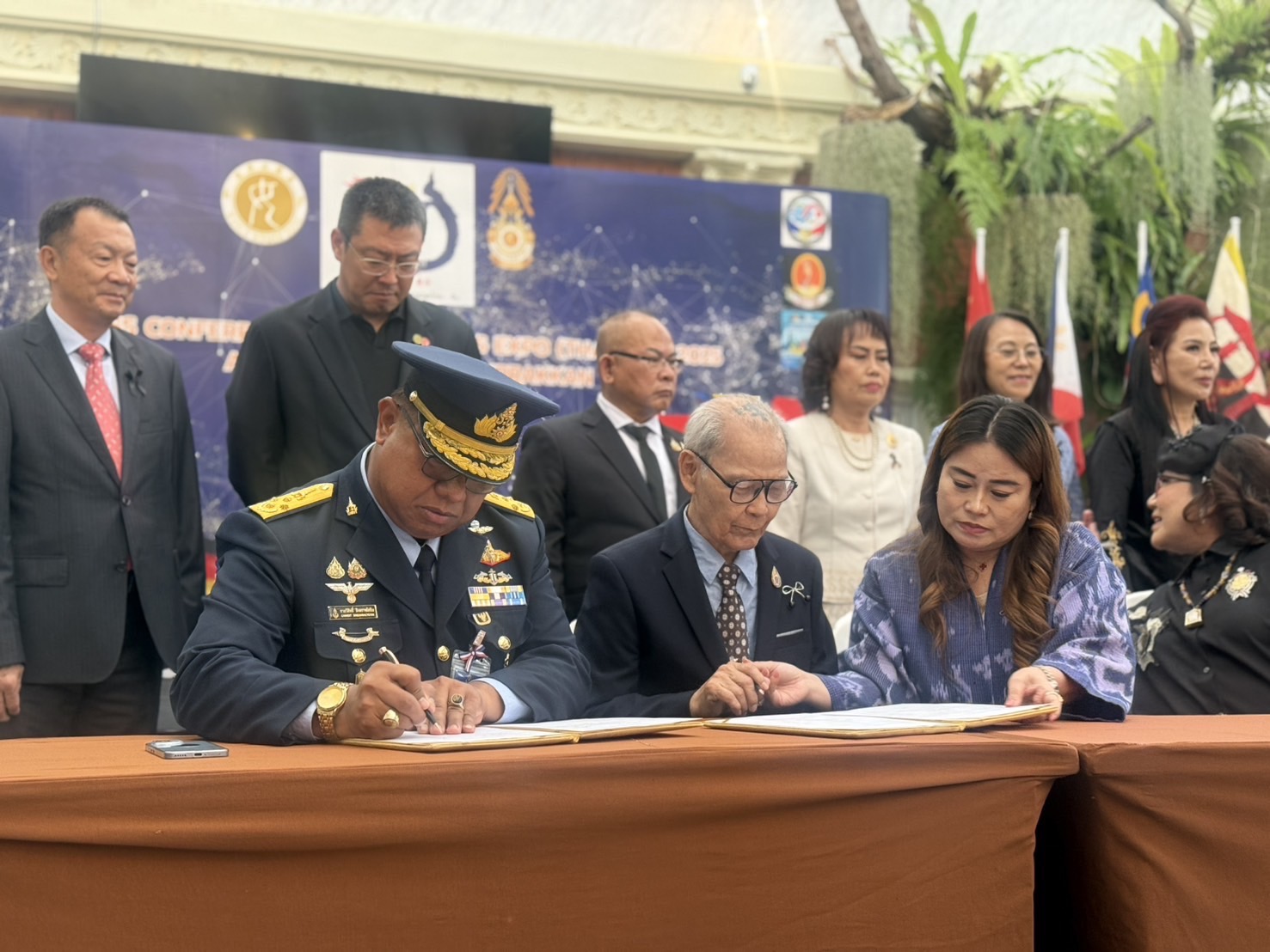 โดยคุณชายวิสิทธิ์ สิงหราชโยธิน ประธานกรรมการมูลนิธิพิทักษไทยและผู้บัญชาการสํานักนโยบายและแผนยุทธศาสตร์ลงนาม MOU World Women’s Expo Thailand