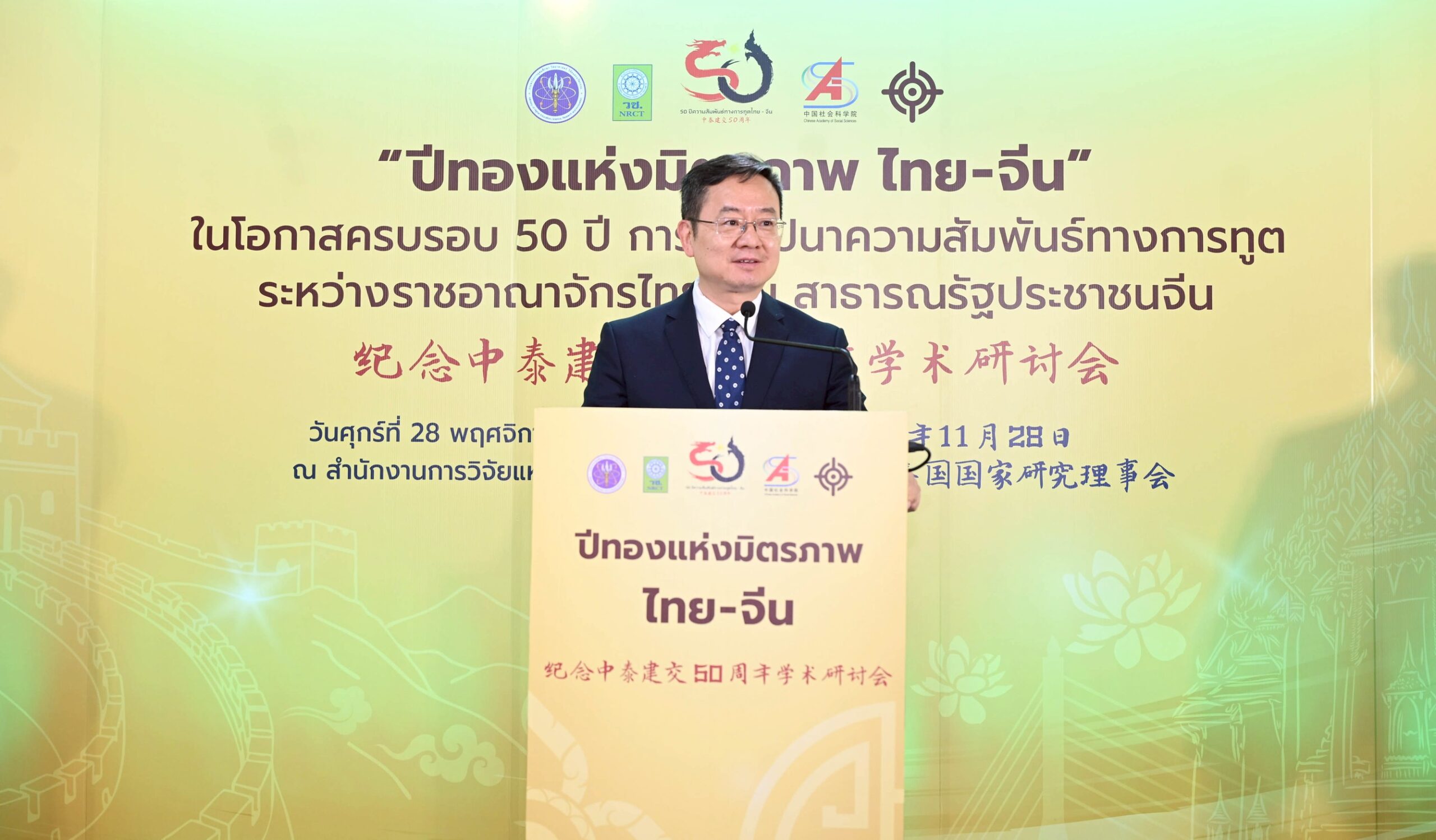 สำหรับงาน “ปีทองแห่งมิตรภาพ ไทย–จีน” จัดขึ้นโดย วช. ร่วมกับ CASS ภายใต้การดำเนินงานของศูนย์วิจัยจีน CASS–NRCT CCS ซึ่งเป็นกลไกสำคัญในการผลักดันความร่วมมือทางวิชาการไทย–จีนให้เกิดผลลัพธ์อย่างเป็นรูปธรรม ผ่านการสร้างองค์ความรู้เชิงลึกด้านไทย–จีน รวมถึงศึกษาและการเปิดพื้นที่เชื่อมโยงประชาชนจากทั้งสองประเทศให้มีความเข้าใจซึ่งกันและกันมากยิ่งขึ้น และเป็นเวทีสำคัญในการกำหนดทิศทางอนาคตของมิตรภาพไทย–จีน มุ่งเสริมสร้าง “ประชาคมไทย–จีน แห่งอนาคตร่วม” ที่ขับเคลื่อนด้วยวิทยาศาสตร์ วิจัย และนวัตกรรม นำไปสู่การพัฒนาประเทศอย่างมั่นคงและยั่งยืนต่อไป