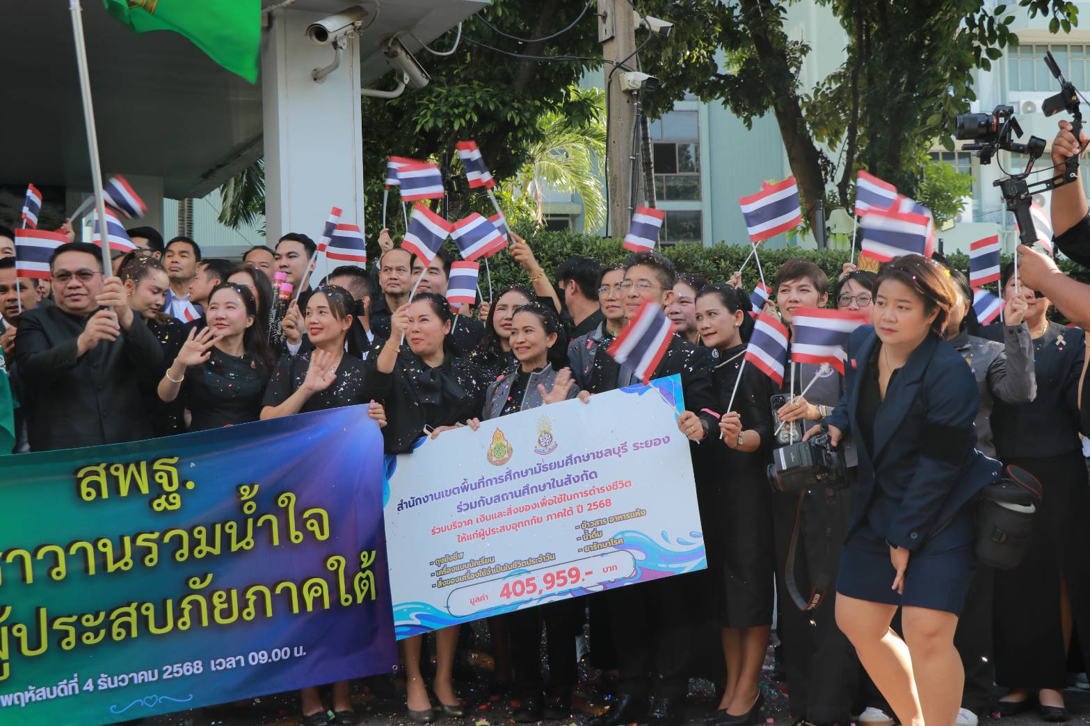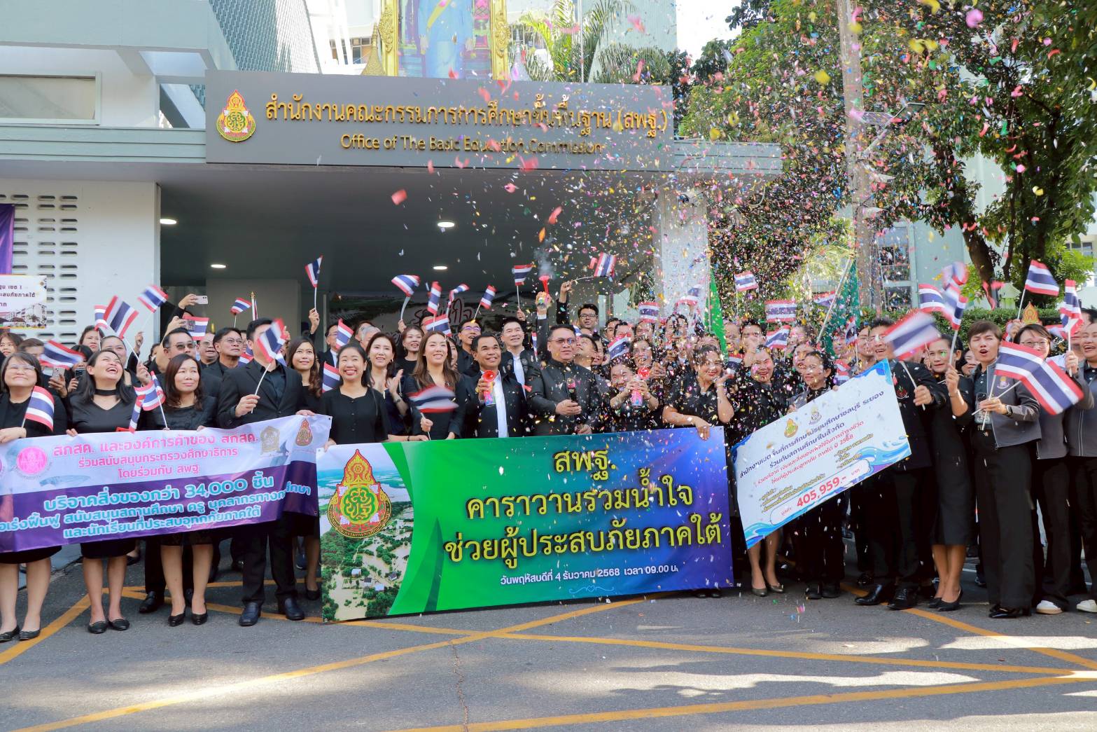 สพฐ. ระดมคาราวานใหญ่ลงใต้ ส่งมอบความช่วยเหลือเร่งด่วนหลังสถานศึกษากว่า 800 แห่งได้รับผลกระทบจากอุทกภัย ดร.ศักดิ์สิน โรจน์สราญรมย์ หนุนรถบรรทุกเสริมกำลังขนส่งสิ่งของ ขณะรัฐมนตรีศึกษาธิการย้ำยืนเคียงข้างครู–นักเรียนจนกว่าสถานการณ์จะคลี่คลาย.