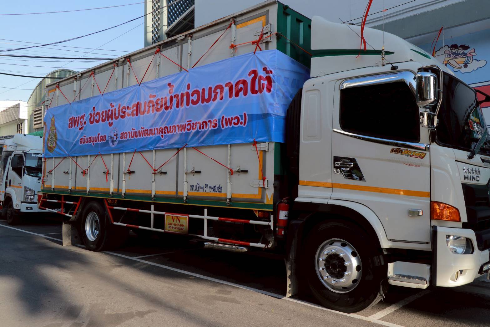หนึ่งในกำลังสำคัญของภารกิจครั้งนี้คือ ดร.ศักดิ์สิน โรจน์สราญรมย์ ประธาน พว. ซึ่งประกาศสนับสนุน รถบรรทุกสำหรับขบวนคาราวาน เพื่อใช้ลำเลียงเครื่องอุปโภคบริโภค ชุดยังชีพ วัสดุฟื้นฟูสถานศึกษา และสิ่งของจำเป็นต่าง ๆ ลงสู่พื้นที่ประสบภัยใน 10 จังหวัดภาคใต้ ช่วยเพิ่มขีดความสามารถในการขนส่งและความรวดเร็วในการเข้าถึงโรงเรียนที่ได้รับผลกระทบจำนวนมาก