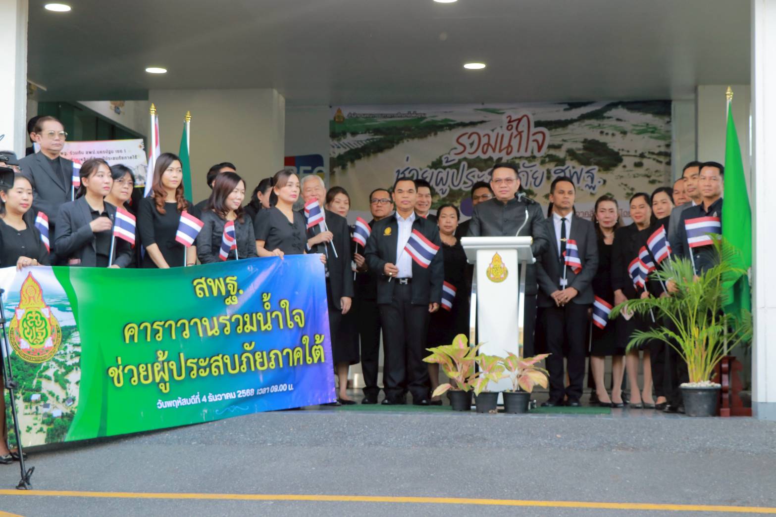 เมื่อวันที่ 4 ธันวาคม 2568 ที่สวนวันครู สำนักงานคณะกรรมการการศึกษาขั้นพื้นฐาน (สพฐ.) กระทรวงศึกษาธิการ นำโดย ศาสตราจารย์นฤมล ภิญโญสินวัฒน์ รัฐมนตรีว่าการกระทรวงศึกษาธิการ เป็นประธานเปิดกิจกรรม “คาราวานช่วยเหลืออุทกภัยในพื้นที่ภาคใต้ ประจำปี 2568” เพื่อส่งมอบความช่วยเหลือเร่งด่วนให้แก่สถานศึกษา นักเรียน ครู และบุคลากรที่ได้รับผลกระทบจากน้ำท่วมหลายจังหวัดในภาคใต้