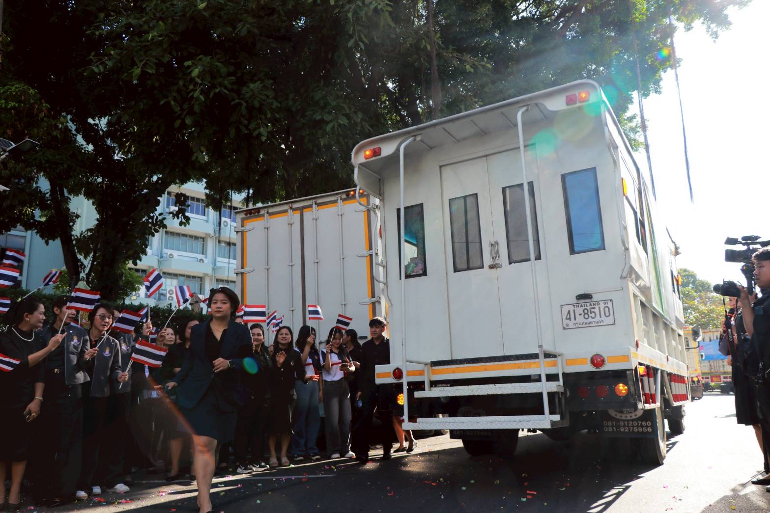 ภายหลังพิธีเปิด ขบวนคาราวานจาก สพฐ. พร้อมรถบรรทุกที่ได้รับการสนับสนุนจาก ประธาน สถาบันพัฒนาคุณภาพวิชาการ หรือ พว. ดร.ศักดิ์สิน โรจน์สราญรมย์ ได้ออกเดินทางลงสู่พื้นที่ทันที เพื่อส่งมอบความช่วยเหลือเป็นลำดับแรกในพื้นที่จังหวัดสงขลา ปัตตานี ยะลา และนราธิวาส