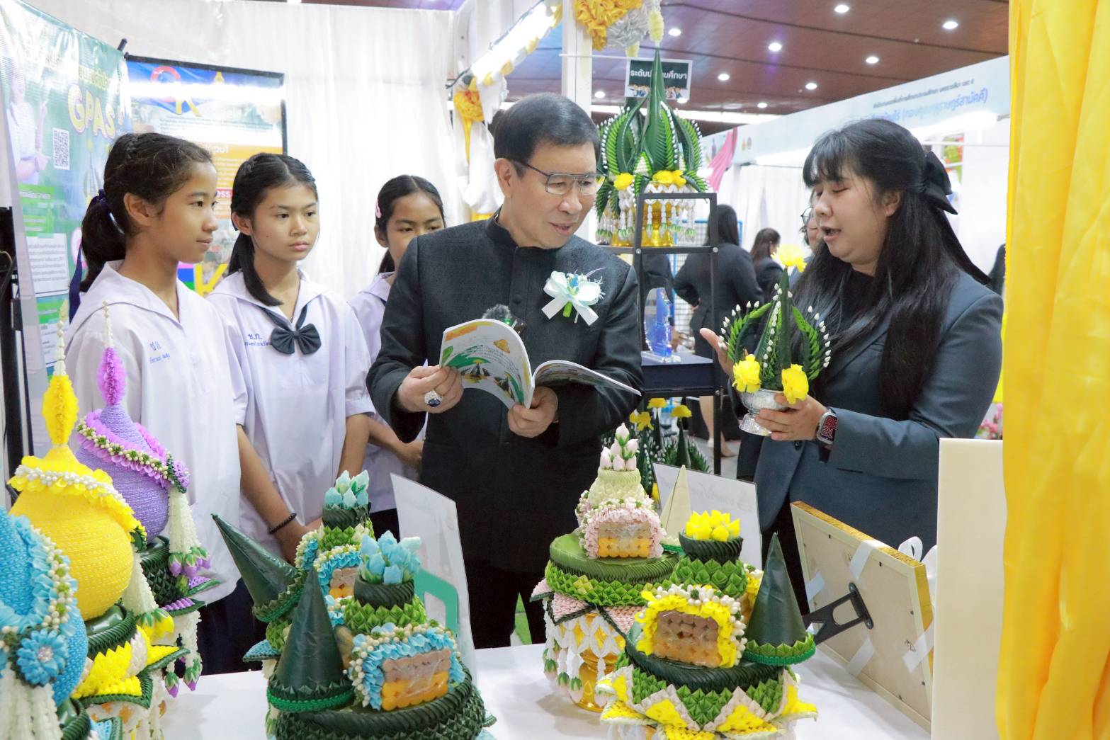 “ขณะนี้นโยบายของ สพฐ.และ นโยบายของรัฐมนตรีว่าการกระทรวงศึกษาธิการ ก็ไปในทิศทางเดียวกันที่จะพัฒนาครูและกระบวนการเรียนรู้ ซึ่งเป็นจุดสำคัญมาก เพราะถ้าชูธงเรื่องการพัฒนาครูจะมีความหมายมากกว่าพัฒนาหลักสูตร เพราะการพัฒนาหลักสูตรเป็นแค่การพัฒนาหนังสือเรียน เนื้อหาไม่เกี่ยว จริง ๆ แล้วเนื้อหาทั้ง 8 กลุ่มสาระการเรียนรู้เป็นเรื่องที่เด็กต้องรู้ เพราะเป็นบริบทของประเทศบริบทของชีวิตคนไทย แต่จะให้เข้าใจรู้ความหมายเห็นคุณค่าของสิ่งเหล่านี้ได้ต้องใช้ Active Learning ด้วยกระบวนการคิดขั้นสูงเชิงระบบ GPAS 5 Steps ไปศึกษาให้เข้าใจรู้ความหมายของทั้งบริบท เมื่อเข้าใจแล้วก็เอากระบวนการ GPAS 5 Steps ไปเรียนรู้ต่อ และไปสร้างนวัตกรรมที่เกิดประโยชน์ต่อสังคม ต่ออาชีพของตนเอง ของพ่อแม่ เป็นการต่อยอดไปเรื่อย ๆ ไม่จบสิ้น”ดร.ศักดิ์สินกล่าวและว่า จากการเสนอผลงานวันนี้ ตนรู้สึกภาคภูมิใจที่ทำให้เด็กภาคอีสานตอนล่างมีความคิดสร้างสรรค์ที่แตกต่างเยอะมาก เช่นการที่เด็กสามารถพัฒนารูปทรงเลขาคณิตให้เป็นรูปแบบของอาหารทำให้อาหารน่ารับประทาน ซึ่งเป็นการบูรณาการได้ทั้งหมดจริง ๆ และจากการสอบถามครูผู้สอนก็บอกว่าเป็นแนวทางจัดการเรียนการสอนที่ง่ายและดีมาก ซึ่งคาดไม่ถึง เพราะฉะนั้นโดยเป้าหมายของตนคืออยากเห็นเด็กทางภาคอีสานนำวัตถุดิบในพื้นที่มาสร้างเป็นนวัตกรรมทุกประเภท ไม่ว่าจะเป็นอาหาร ข้าวของ เครื่องใช้ และถ้าทุกภูมิภาคของประเทศไทยทำได้แบบนี้ เชื่อว่าประเทศไทยจะมีนวัตกรรมเยอะมาก ๆ