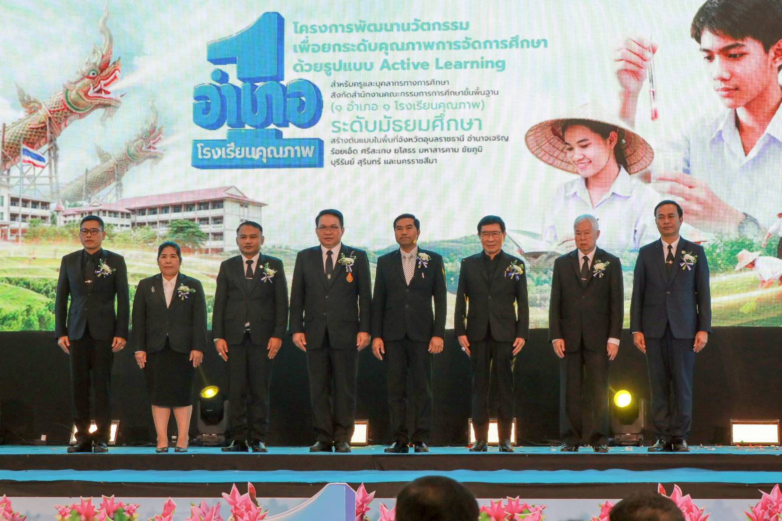 “วันนี้เป็นวันสำคัญวันหนึ่งที่สำนักงานคณะกรรมการการศึกษาขั้นพื้นฐาน (สพฐ.)ได้ร่วมมือกับมหาวิทยาลัยราชภัฏอุดรธานี จัดอบรมพัฒนาครูให้เข้าใจการจัดการเรียนการสอนแบบ Active Learning ด้วยกระบวนการคิดขั้นสูงเชิงระบบ GPAS 5 Stepsและจัดให้มีการประกวดนวัตกรรมนักเรียนระดับมัธยมศึกษา เพื่อที่จะให้เกิดการเรียนรู้แบบวิทยาศาสตร์ ซึ่งเด็กจะต้องเตรียมความพร้อมในการเรียนรู้ตั้งแต่ระดับอนุบาล จนถึงระดับมัธยมศึกษา ไม่จำเป็นต้องรอให้จบมหาวิทยาลัย ครูต้องคิดสร้างสรรค์ให้โอกาสกับนักเรียนทุกคน”เลขาธิการ กพฐ.กล่าวและว่า ศ.ดร.นฤมล ภิญโญสินวัฒน์ รัฐมนตรีว่าการกระทรวงศึกษาธิการ ให้ความสำคัญกับการพัฒนาครูและพัฒนานักเรียนโดยเฉพาะระดับห้องเรียน