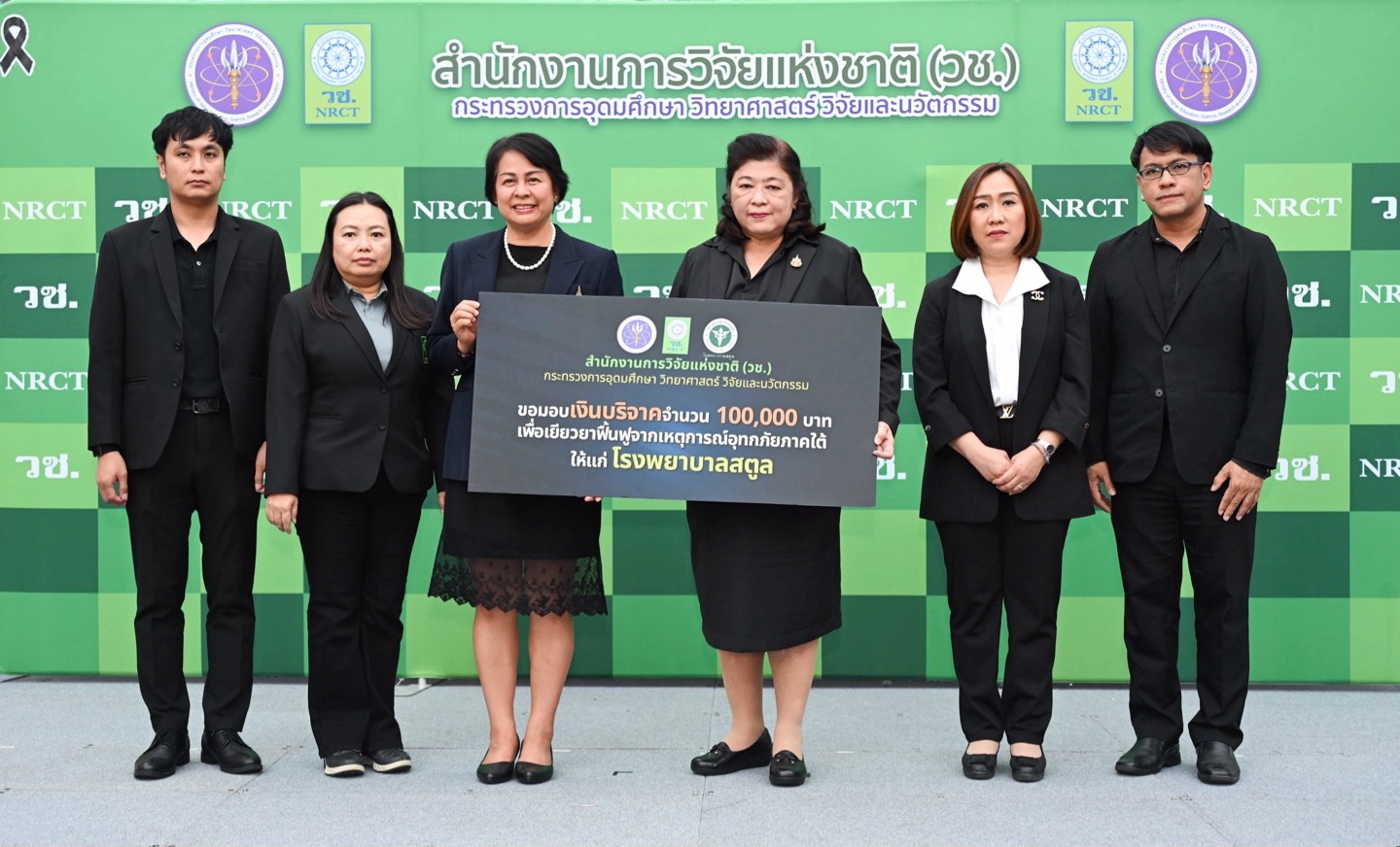 ดร.วิภารัตน์ ดีอ่อง ผู้อำนวยการสำนักงานการวิจัยแห่งชาติ กล่าวว่า วช. ตระหนักถึงความสำคัญของการนำองค์ความรู้ งานวิจัย และนวัตกรรม มาประยุกต์ใช้เพื่อรับมือกับสถานการณ์วิกฤตของประเทศ โดยนวัตกรรมเท้าเทียมไดนามิกส์ (sPace) ซึ่งเป็นผลงานวิจัยของนักวิจัยไทยที่มีคุณภาพสูงตามมาตรฐานสากล สามารถนำไปใช้ช่วยเหลือและฟื้นฟูสมรรถภาพกำลังพลทหารที่ได้รับผลกระทบจากเหตุการณ์ชายแดนได้อย่างเป็นรูปธรรม พร้อมนี้ได้มอบเงินบริจาคบรรเทาความเดือดร้อนของผู้ประสบภัยพิบัติในพื้นที่ภาคใต้ เพื่อสนับสนุนการดูแลรักษาผู้ได้รับผลกระทบ และเสริมสร้างความพร้อมของระบบสาธารณสุขในพื้นที่
