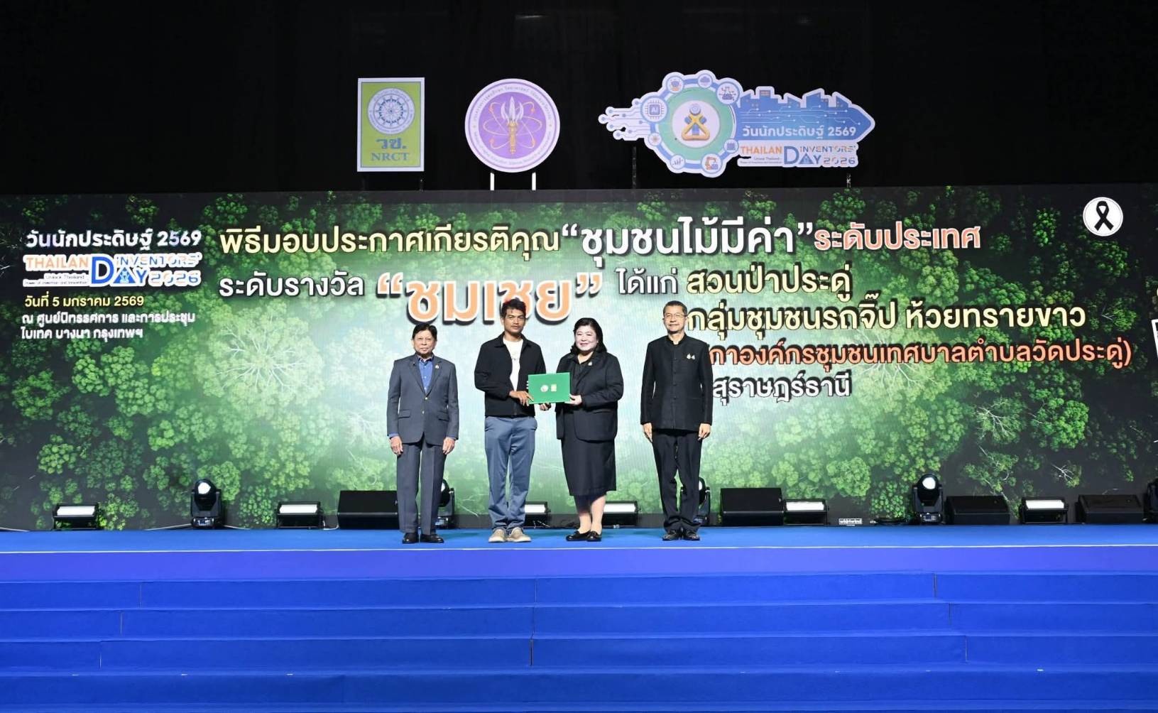 วันที่ 5 มกราคม 2569 สำนักงานการวิจัยแห่งชาติ (วช.) กระทรวงการอุดมศึกษา วิทยาศาสตร์ วิจัยและนวัตกรรม ร่วมกับ กรมป่าไม้ สำนักงานพัฒนาเศรษฐกิจจากฐานชีวภาพ (องค์การมหาชน) (สพภ.) และธนาคารเพื่อการเกษตรและสหกรณ์การเกษตร (ธ.ก.ส.) จัดเสวนาในหัวข้อ “ไม้มีค่า สร้างป่า สร้างคน ชุมชนยั่งยืน” และพิธีมอบประกาศเกียรติคุณ “ชุมชนไม้มีค่า” ระดับประเทศ ครั้งที่ 3 ประจำปี 2568 โดย ดร.วิภารัตน์ ดีอ่อง ผู้อำนวยการสำนักงานการวิจัยแห่งชาติ กล่าวแสดงความยินดีแก่ชุมชนที่ได้รับประกาศเกียรติคุณ พร้อมด้วย ดร.ธีรภัทร ประยูรสิทธ ประธานคณะกรรมการโครงการประกาศเกียรติคุณ “ชุมชนไม้มีค่า” ระดับประเทศ กล่าวถึงความเป็นมาของโครงการ ศาสตราจารย์ ดร.สนิท อักษรแก้ว ประธานคณะอนุกรรมการขับเคลื่อนโครงการชุมชนไม้มีค่า กล่าวถึงภาพรวมการขับเคลื่อนโครงการชุมชนไม้มีค่า ณ ศูนย์นิทรรศการและการประชุมไบเทค บางนา กรุงเทพฯ