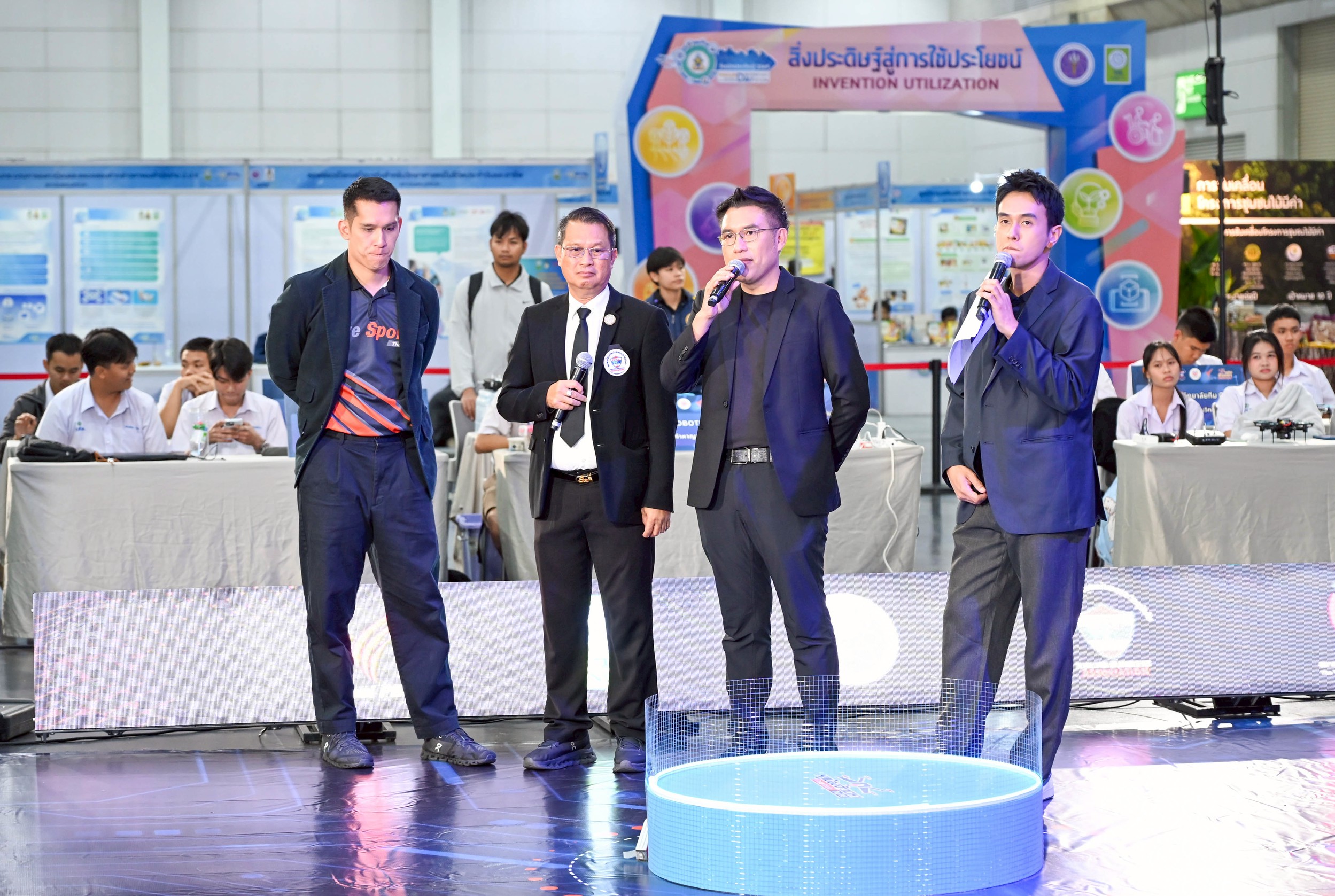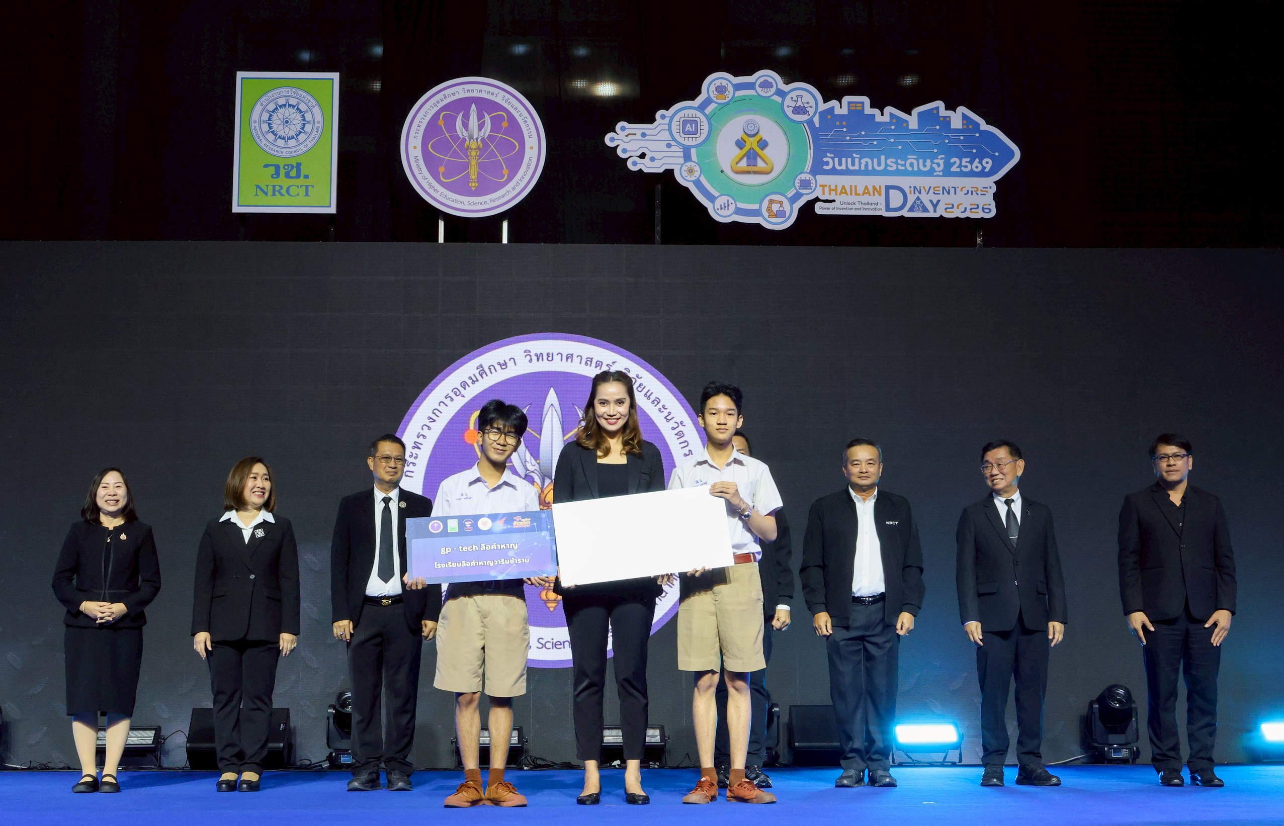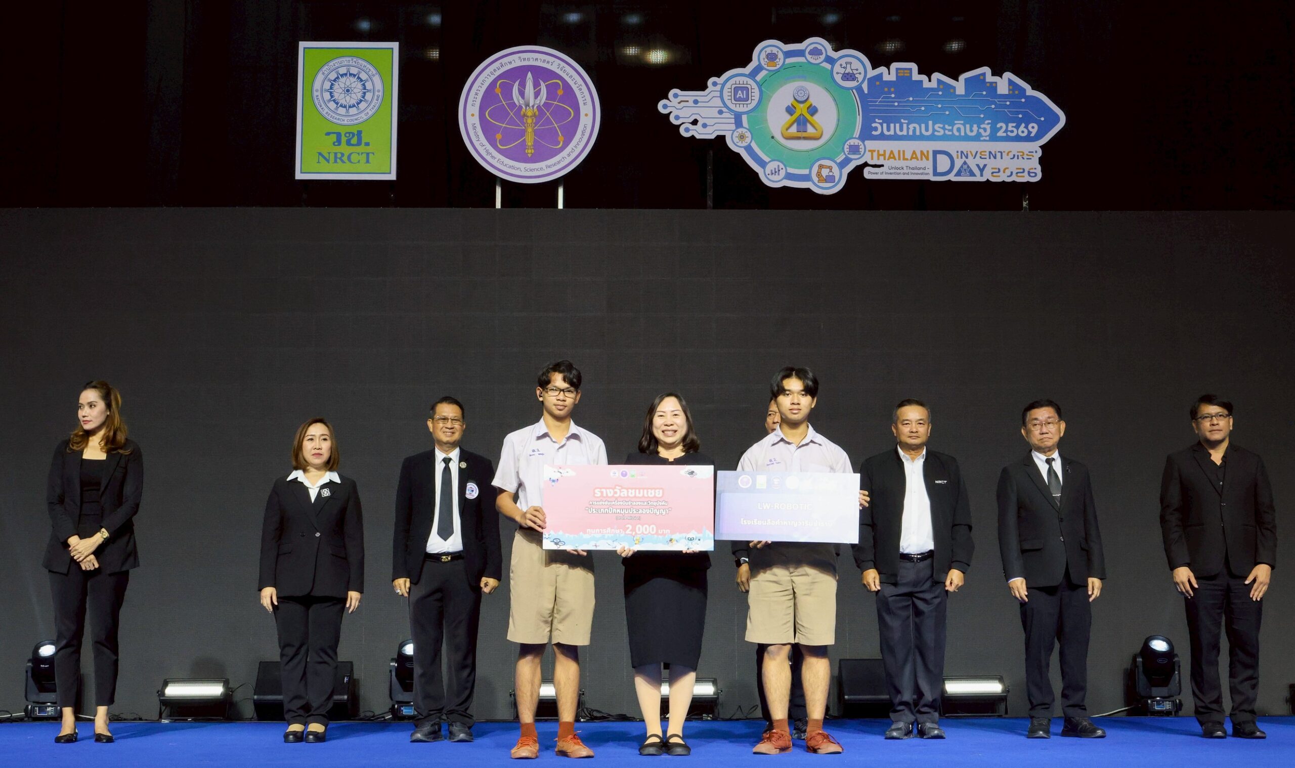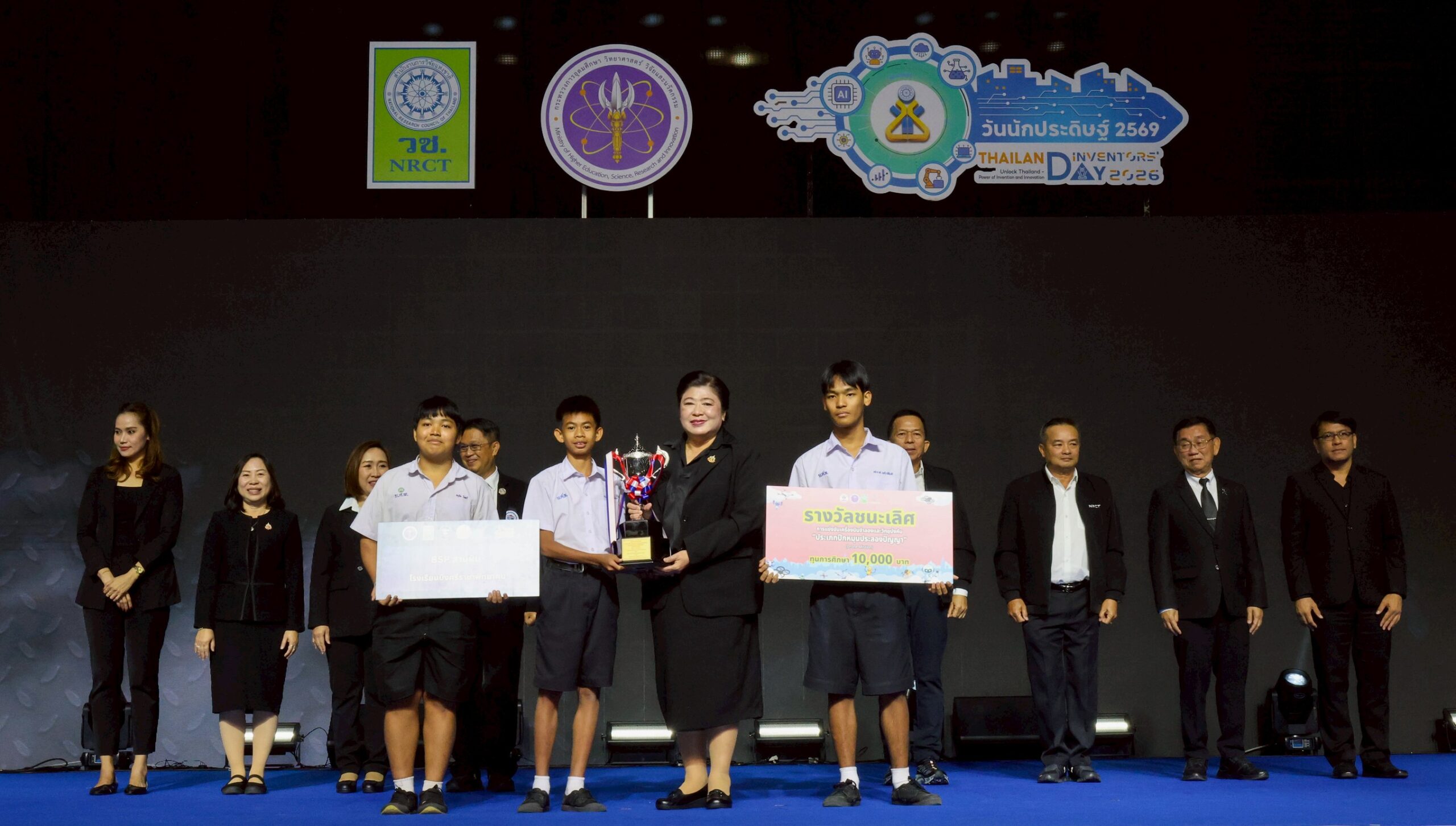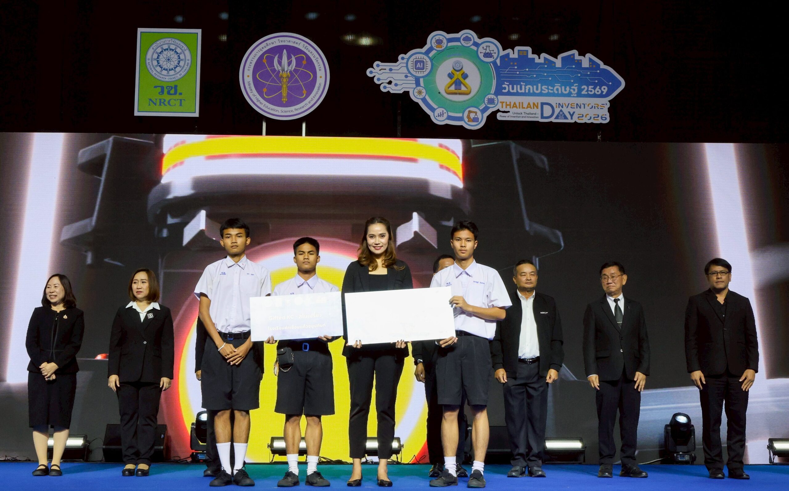 ดีอ่อง ผู้อำนวยการสำนักงานการวิจัยแห่งชาติ เป็นผู้มอบรางวัลแก่เยาวชนผู้เข้าแข่งขันที่ได้รับรางวัล พร้อมด้วย คณะผู้บริหาร วช. และคณะผู้ทรงคุณวุฒิ วช. ร่วมรับชมและให้กำลังใจผู้เข้าแข่งขัน ณ EH 100 – 104