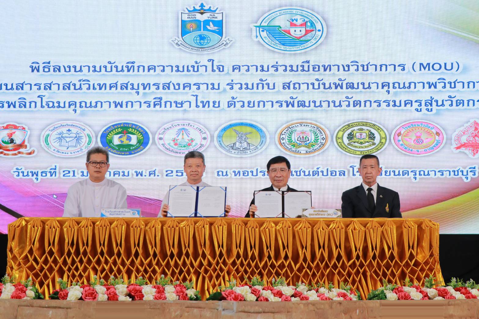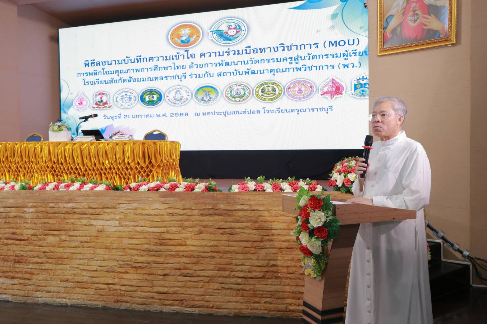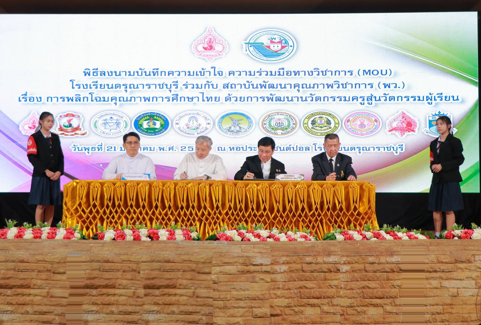 เมื่อวันที่ 21 มกราคม พ.ศ. 2569 ณ หอประชุมเซนต์ปอล โรงเรียนดรุณาราชบุรี จังหวัดราชบุรี ได้มีพิธีลงนามบันทึกความเข้าใจ (MOU) เรื่องการพลิกโฉมคุณภาพการศึกษาไทย ด้วยการพัฒนานวัตกรรมครูสู่นวัตกรรมผู้เรียน โดยเป็นโครงการความร่วมมือทางวิชาการระหว่าง โรงเรียนในสังกัดสังฆมณฑลราชบุรี ซึ่งในวันนี้มีโรงเรียนในจังหวัดราชบุรี กาญจนบุรี และจังหวัดสมุทรสงคราม จำนวน 12 โรงเรียน ร่วมลงนามกับ สถาบันพัฒนาคุณภาพวิชาการ (พว.)