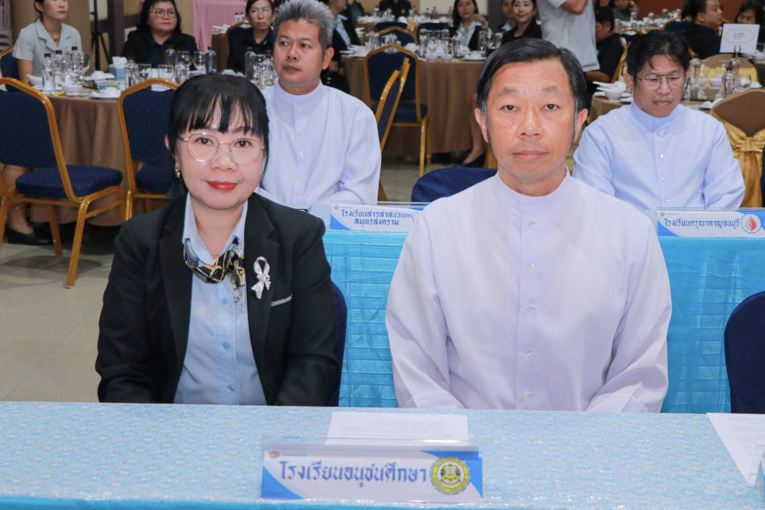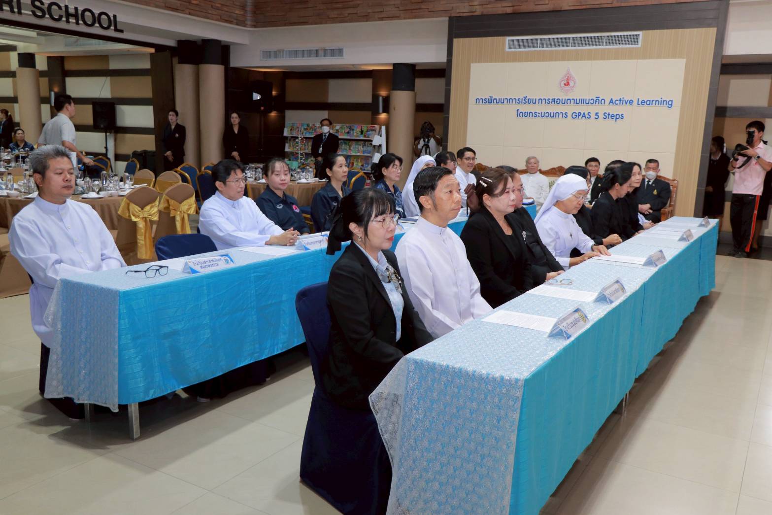 โดยมี ดร.ศักดิ์สิน โรจน์สราญรมย์ ประธานกรรมการบริหารสถาบันพัฒนาคุณภาพวิชาการ (พว.) นายไพศาล โรจน์สราญรมย์ รองประธานกรรมการบริหาร พว. บาทหลวง ผศ.ดร.อภิสิทธิ์ กฤษเจริญ ผู้อำนวยการฝ่ายอบรมศึกษาสังฆมณฑลราชบุรี บาทหลวง ดร.สมเกียรติ จูรอด ผู้อำนวยการศูนย์วิชาการโรงเรียนในสังกัดสังฆมณฑลราชบุรี ตลอดจนผู้อำนวยการและผู้บริหารโรงเรียนในสังกัดสังฆมณฑราชบุรี คณะครูผู้รับผิดชอบด้านบริหารงานวิชาการ บุคลากรทางการศึกษา และเจ้าหน้าที่ทุกภาคส่วนที่เกี่ยวข้อง มาร่วมเป็นสักขีพยานโดยพร้อมเพรียงกัน