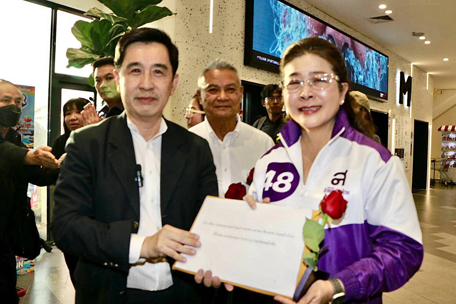 โดยเริ่มจากมอบดอกไม้และเอกสารให้กับนายจุลพันธ์ อมรวิวัฒน์ แคนดิเดตนายกฯและหัวหน้าพรรคเพื่อไทย จากนั้นมอบดอกไม้พร้อมเอกสารการทุจริตให้กับนายณัฐพงษ์ เรืองปัญญาวุฒิ แคนดิเดตนายกฯ หัวหน้าพรรคประชาชน ต่อด้วยมอบดอกไม้และ