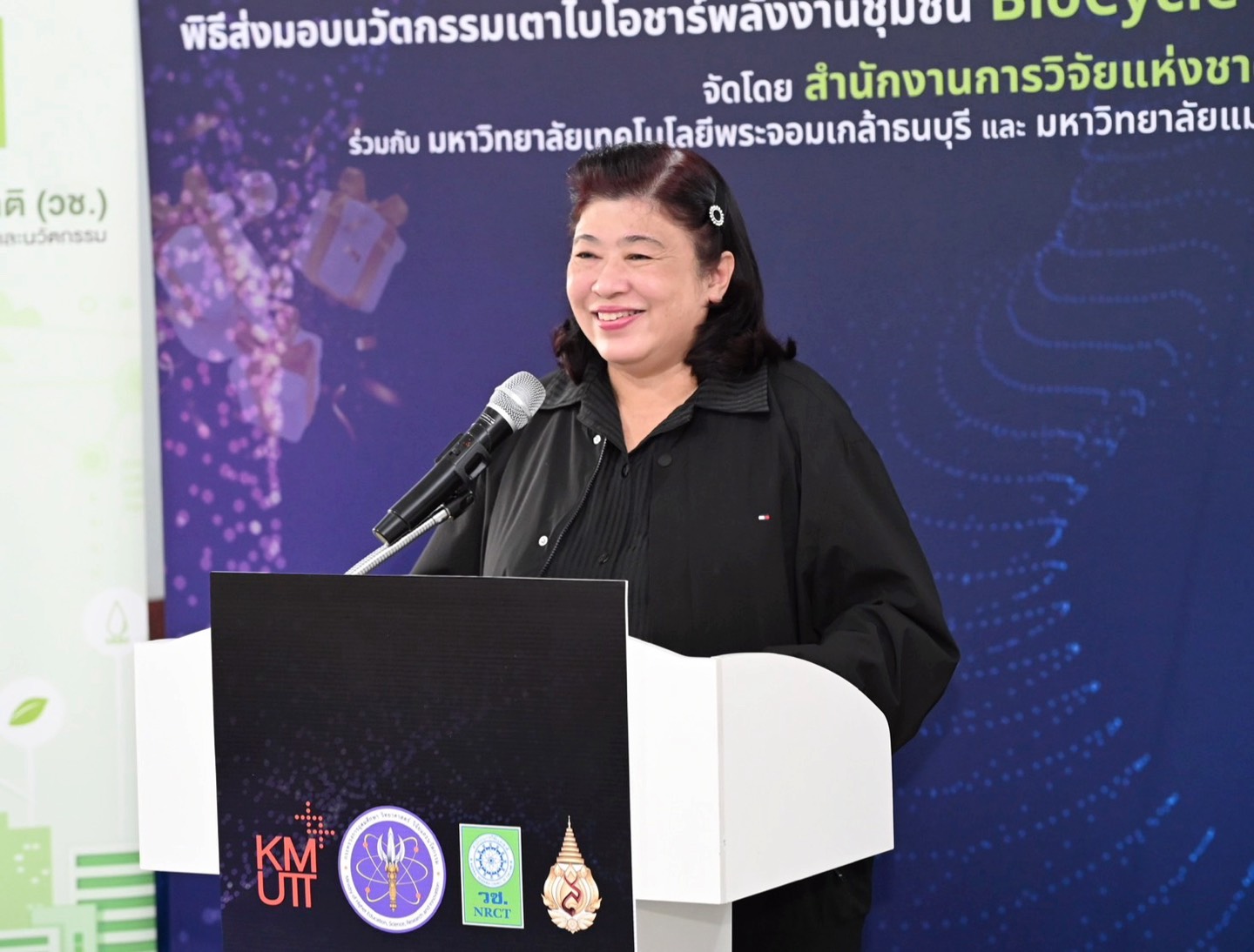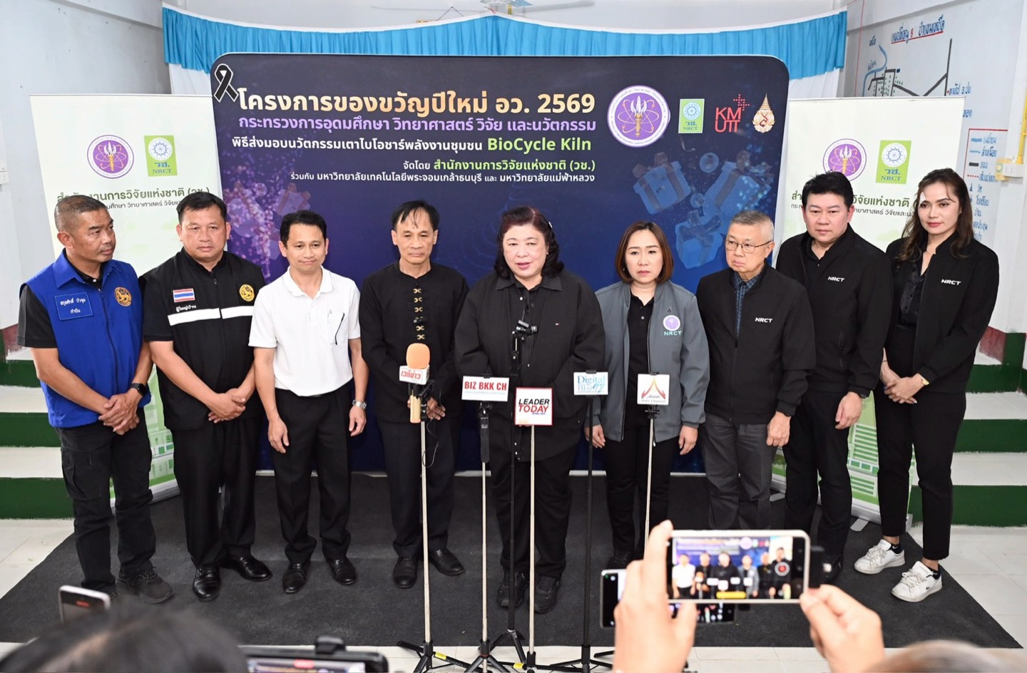 ดร.วิภารัตน์ ดีอ่อง ผู้อำนวยการสำนักงานการวิจัยแห่งชาติ กล่าวว่า อว.ได้จัดทำโครงการของขวัญปีใหม่ 2569 ซึ่ง วช.ได้ร่วมมอบนวัตกรรมเพื่อการใช้ประโยชน์ให้กับพื้นที่ ผ่านนวัตกรรมเตาไบโอชาร์พลังงานชุมชน BioCycle Kiln โดยสนับสนุนให้มหาวิทยาลัยเทคโนโลยีพระจอมเกล้าธนบุรีร่วมกับมหาวิทยาลัยแม่ฟ้าหลวง ร่วมพัฒนานวัตกรรมดังกล่าว ควบคู่ไปกับการถ่ายทอดองค์ความรู้ด้านการใช้งานสู่ชุมชน เพื่อให้สามารถนำเทคโนโลยีไปประยุกต์ใช้ในการจัดการเศษวัสดุเหลือทิ้งทางการเกษตรได้อย่างมีประสิทธิภาพ ส่งเสริมให้ชุมชนสามารถพึ่งพาตนเองด้านเทคโนโลยี ต่อยอดการใช้ประโยชน์เชิงเศรษฐกิจและสิ่งแวดล้อม อันจะนำไปสู่การพัฒนาคุณภาพชีวิตของประชาชนและความเข้มแข็งของชุมชน