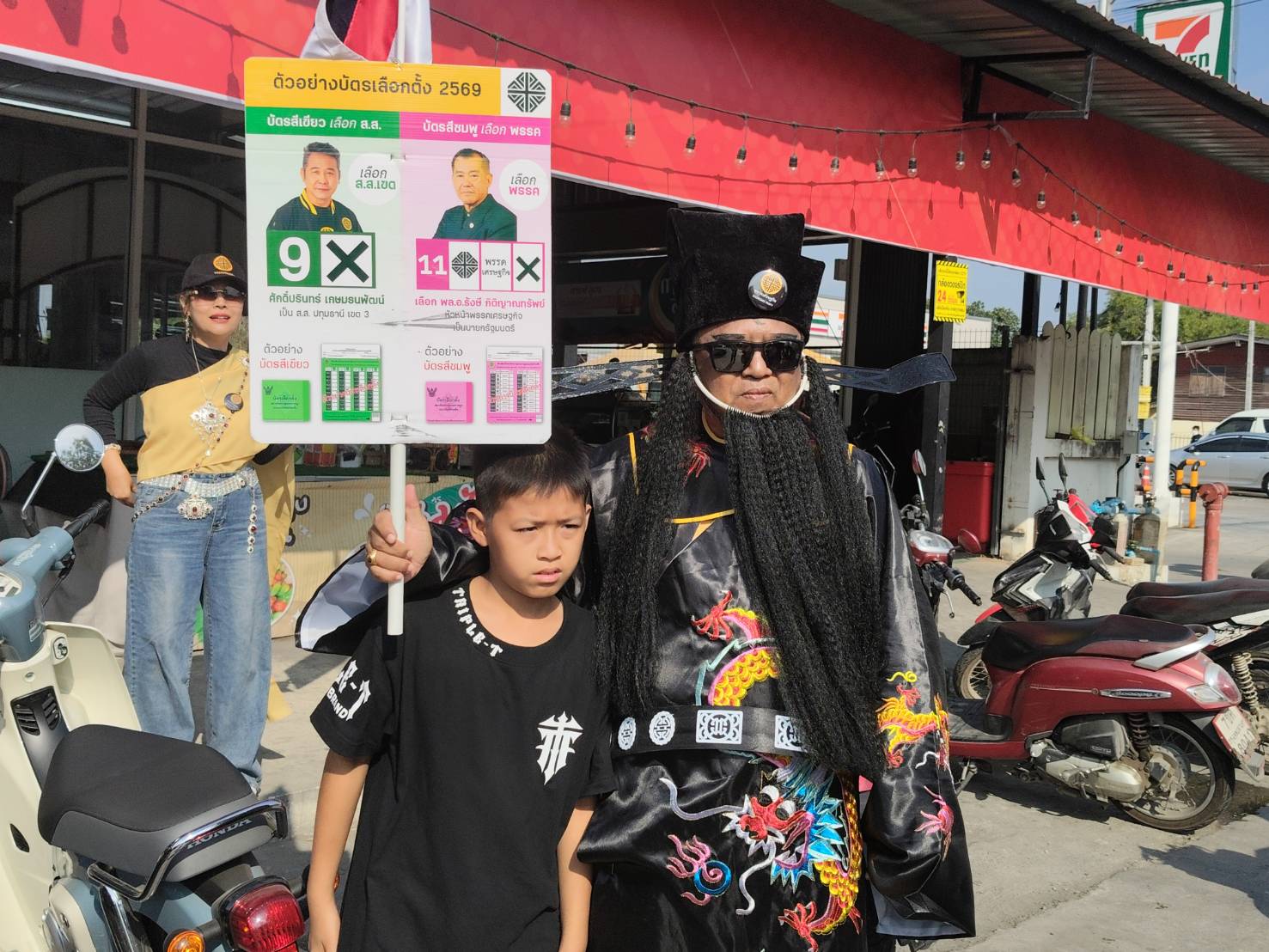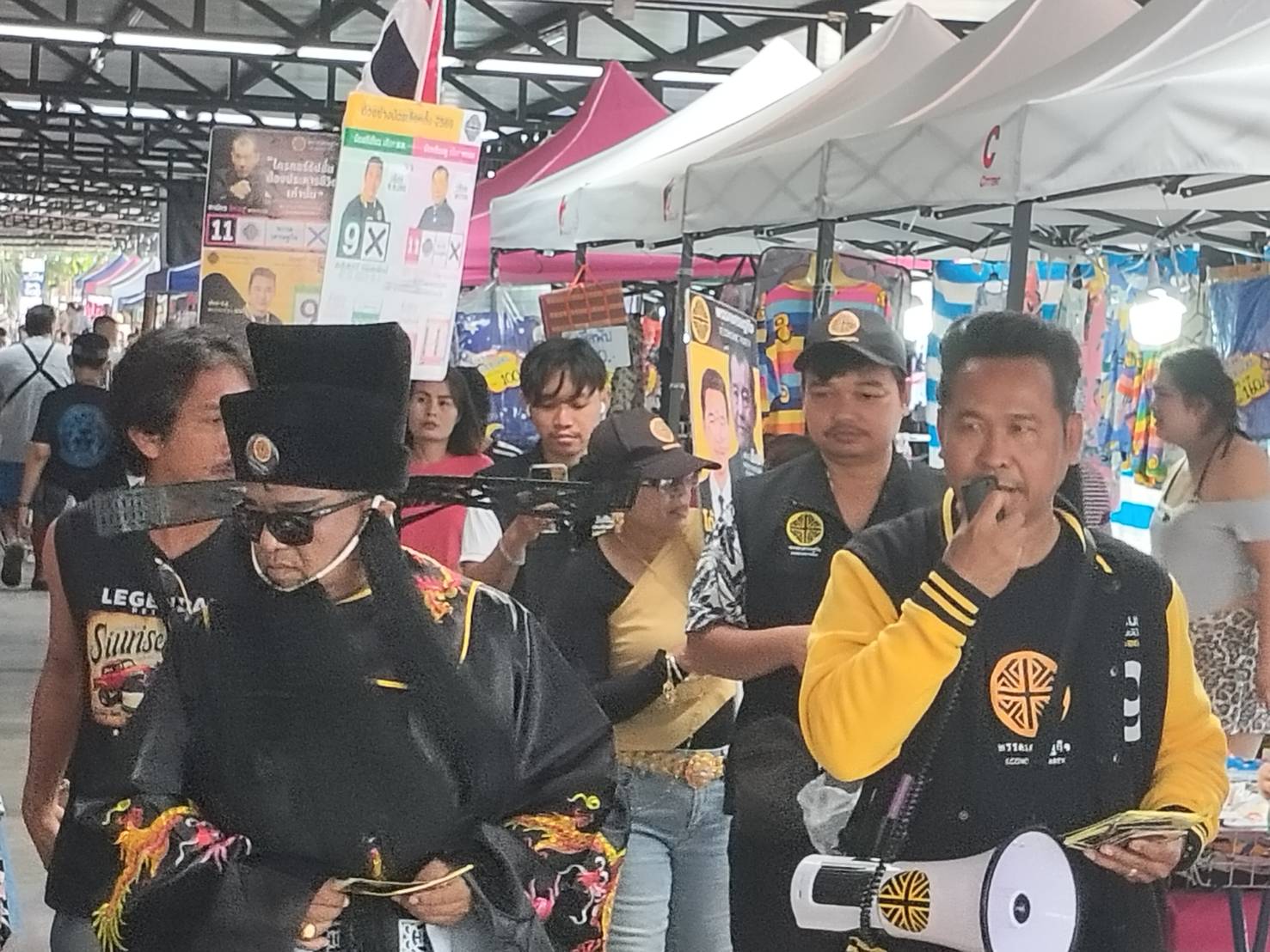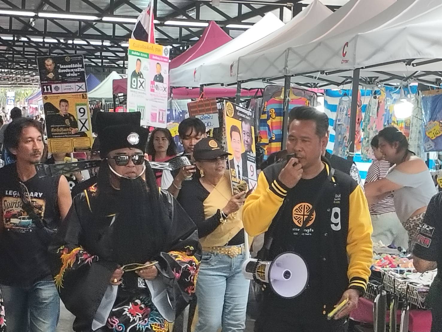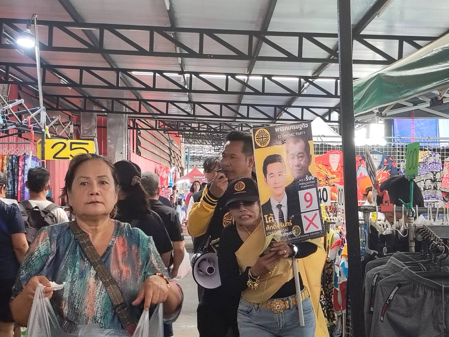 ผู้สมัคร ส.ส.ปทุมธานี เขต 3 พรรคเศรษฐกิจ เบอร์ 9 นำทีมผู้ช่วยหาเสียง แต่งชุด “เปาปุ้นจิ้น” และ สไบไทย ลงพื้นที่หาเสียงโค้งสุดท้าย ที่ ตลาดพี่ญาคนรุม ปากซอย 13/3 ต.คลองสาม อ.คลองหลวง จ.ปทุมธานี