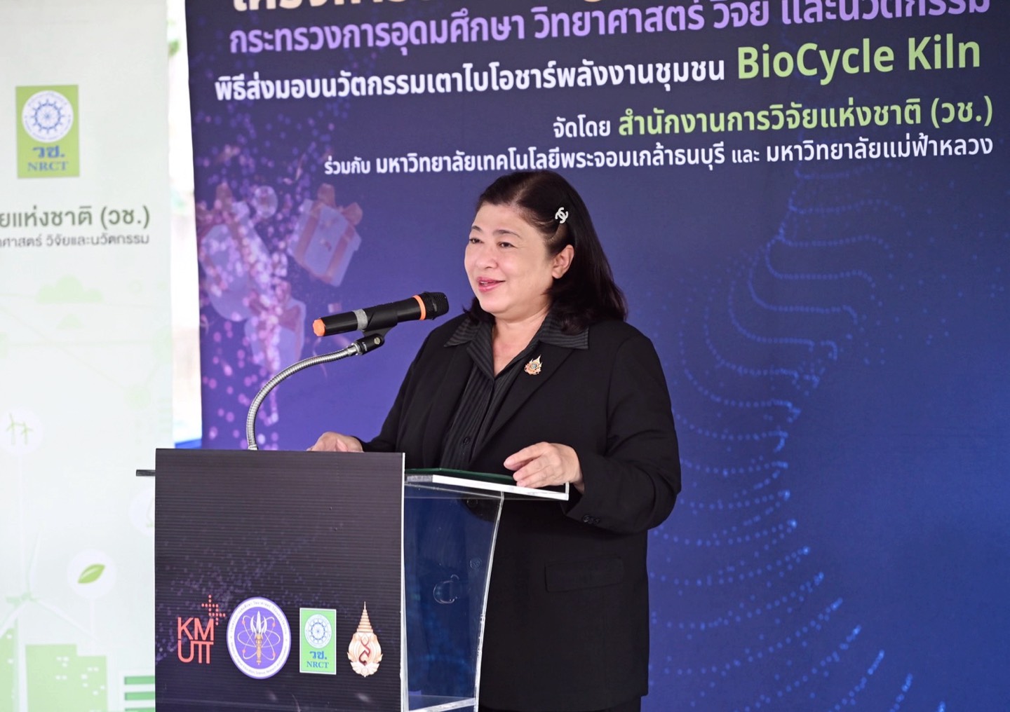 ดร.วิภารัตน์ ดีอ่อง ผู้อำนวยการสำนักงานการวิจัยแห่งชาติ กล่าวว่า นวัตกรรมเตาไบโอชาร์พลังงานชุมชนเป็นผลงานต่อเนื่องจากแผนงานวิจัยมุ่งเป้า PM 2.5 ที่ได้รับการสนับสนุนจาก วช. เพื่อนำองค์ความรู้ด้าน ววน. มาใช้แก้ปัญหาการจัดการเศษวัสดุเหลือใช้ทางการเกษตร สามารถแปรรูปกลับมาใช้ประโยชน์ในรูปของไบโอชาร์ ช่วยปรับปรุงคุณภาพดิน ลดต้นทุนการผลิต และเพิ่มมูลค่าทางเศรษฐกิจให้แก่เกษตรกรและชุมชน ควบคู่กับการลดการเผาในที่โล่ง ซึ่งเป็นสาเหตุสำคัญของปัญหามลพิษทางอากาศ PM2.5 อันจะช่วยลดผลกระทบต่อสุขภาพของประชาชนและสิ่งแวดล้อม