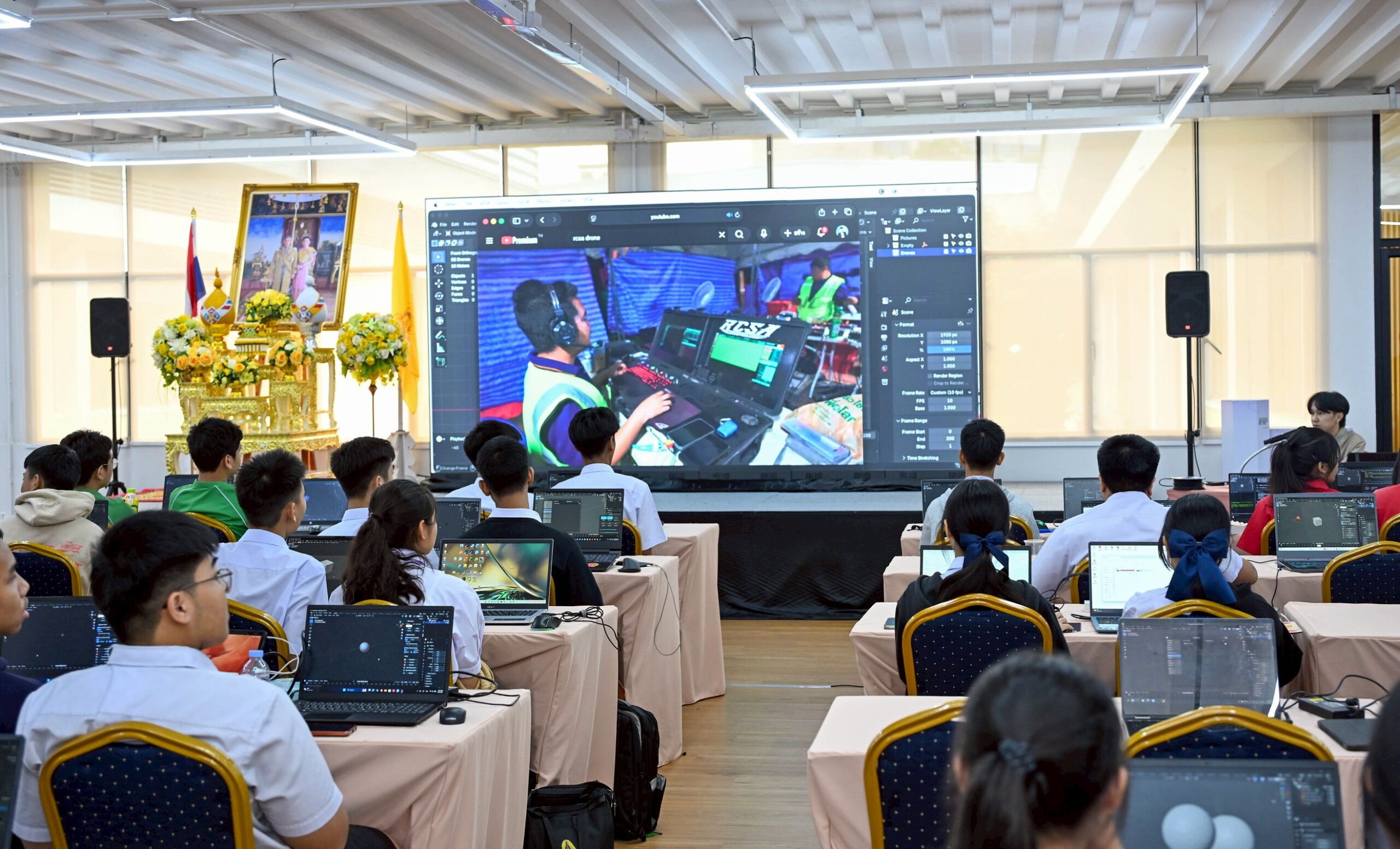 ทั้งนี้ การอบรมถ่ายทอดองค์ความรู้ด้านการเขียนโปรแกรมออกแบบแผนการบินโดรนแปรอักษรและการแข่งขันออกแบบแผนการบินโดรนแปรอักษรชิงถ้วยพระราชทาน ประจำปี 2569 (สนามคัดเลือก สนามที่ 1) จัดขึ้นระหว่างวันที่ 13–15 กุมภาพันธ์ 2569 ณ สำนักงานการวิจัยแห่งชาติ นับเป็นเวทีสำคัญในการพัฒนาศักยภาพกำลังคนด้านดิจิทัลและนวัตกรรมโดรนของประเทศ เพื่อรองรับการขยายตัวของเทคโนโลยีอากาศยานไร้คนขับ และเสริมสร้างความสามารถในการแข่งขันของประเทศไทยอย่างยั่งยืน