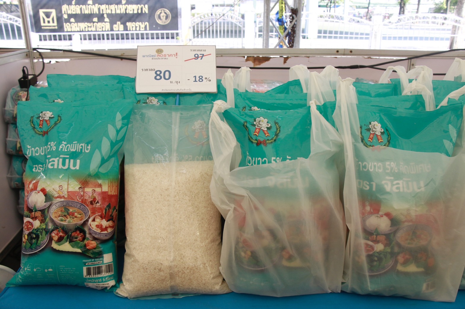 โดยสินค้าไฮไลต์ ที่นำมาลดราคาและเป็นสินค้าที่ประชาชนให้ความสนใจ เช่น ข้าวหอมมะลิ ถุง 5 กิโลกรัม (กก.) ลดราคา 44% จากราคาท้องตลาดทั่วไปเหลือถุงละ 100 บาท ข้าวขาว 5% ถุงละ 5 กก. ลดเหลือ 80 บาท